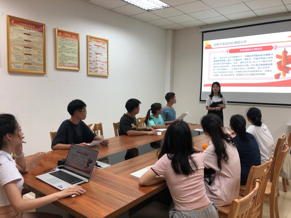 为贯彻落实习近平总书记在党史学习教育动员大会的重要讲话精神,引导广大学生提高思想认识,加强党性锻炼,坚定理想信念,提高大学生的思想政治素养,Beat365官方网站20级党支部于2021年6月4日在第二行政楼214举办20级党支部党史学习教育之改革开放史、中国特色社会主义新时代史。Beat365官方网站20级党支部书记以及部分积极分子出席本次活动。