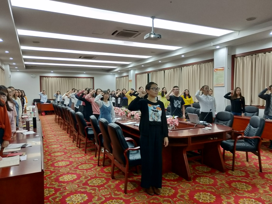 会议上,吕佳慧等15名重点发展对象从思想上、学习上、工作上、生活上等情况依次向党组织进行汇报。汇报完毕后,第一介绍人与第二介绍人向党组织介绍志愿人的情况;与会党员充分讨论志愿人的思想、工作、学习等方面情况;随后志愿人对支部党员提出的意见或建议表明自己的态度进行。紧跟着,全体正式党员移步到第二行政楼214进行无记名投票。党支部严格按照党员发展程序,经过严格考察,充分讨论和表决,一致同意吕佳慧、戴如闯、罗金玉、林佩虹、张鑫、蔡绵荣、吴佳娜、郑依琳、魏莉、卢颖怡、戴文媛、余冰银、冼嘉慧共13名重点发展对象顺利发展成为中共预备党员,由蓝乐钿同志宣读支部决议,并由党员为预备党员戴党员徽章,接着,与会全体同志宣誓入党誓词。