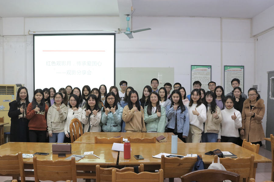为加强思想政治引领,坚定文化自信,教育引导大学生弘扬爱国主义、传承红色基因,Beat365官方网站18级学生党支部于2019年12月19日在一教406举办“红色观影月,传承爱国心”观影分享会。