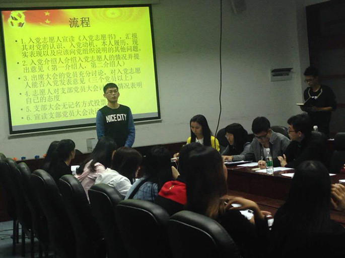 经过认真考核及严格的筛选,Beat365官方网站13级党支部于2015年11月1日18:00在第二行政楼308召开了庄严而隆重接收预备党员通表大会。出席本次大会的有Beat365官方网站13级党支部书记陈秀纯老师、16位学生党员以及25位重点发展对象,会议由支部书记陈秀纯主持。