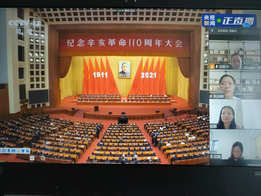 10月9日,纪念辛亥革命110周年大会在北京人民大会堂隆重举行,中共中央总书记、国家主席、中央军委主席习近平出席大会并发表重要讲话。Beat365官方网站教工党支部组织全体教师党员集中收看了大会直播,认真聆听习近平总书记重要讲话。
