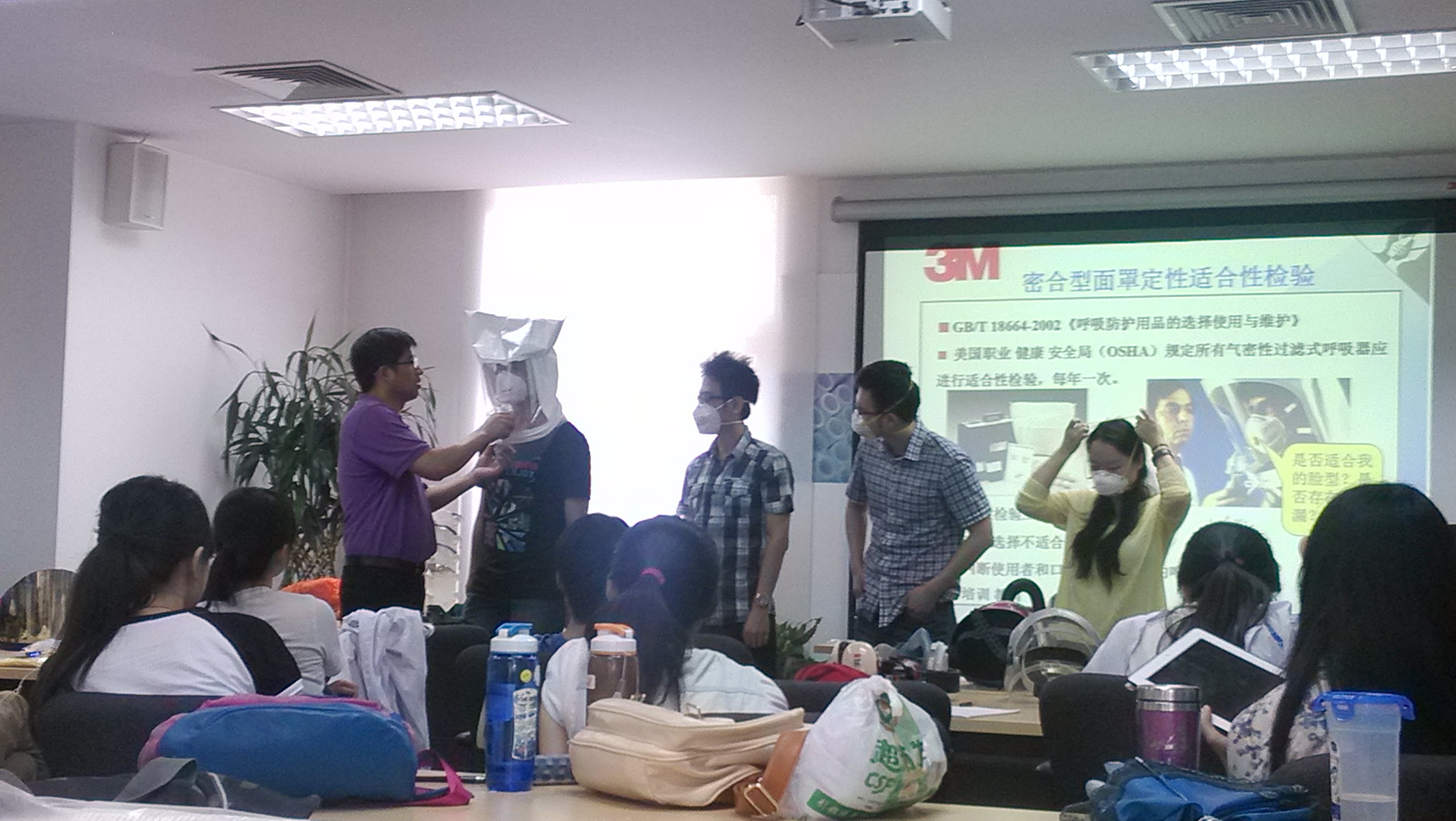 个体防护用品正确使用是职业有害因素防护的最后一道防线。三M公司是全球生产个体防护用品的旗帜性企业,其产品占据全球绝对优势。为了加深同学们对个体防护用品的了解,2012年,在孟庆跃院长支持下,学院与三M公司签署了教学实践合作协议。每年预防医学专业本科生在职业卫生实习中,会利用全天时间,在公司资深专家王恩业先生讲授及指导下,学习个体防护用品及相关知识,并掌握常见个体防护用品的佩戴和使用方法。学生们通过该项活动,既有利于专业课学习,也实现了社会实践的教育目的,有利于贯彻教育教学一体化的宗旨。