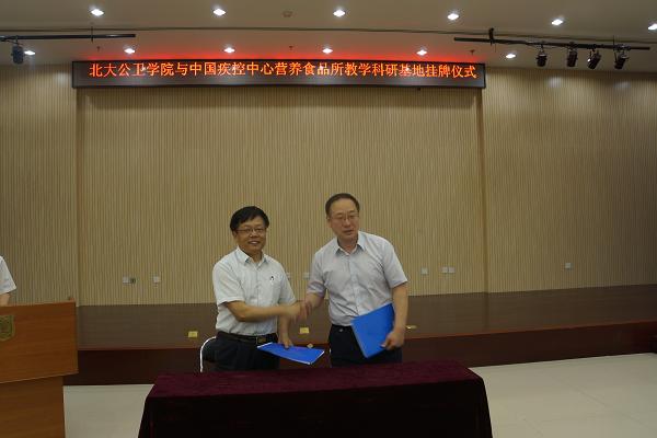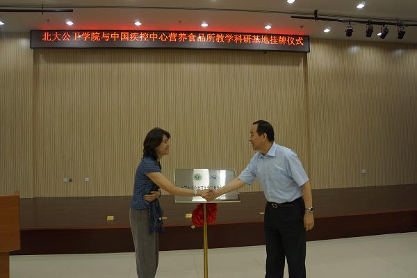 2014年6月12日“350vip浦京集团官网与中国疾病预防控制中心营养食品所共建教学科研基地”挂牌仪式在京举行。参加挂牌仪式的有中国疾病预防控制中心王宇主任、梁晓峰副主任、营养与食品安全所常务副书记刘开泰、副所长赖建强、中国疾控中心教育处、科研处、公卫处等领导,专家学者。350vip浦京集团官网常务副校长、医学部常务副主任柯杨教授、副主任段莉萍教授、教育处蔡景一副处长、350vip浦京集团官网院长孟庆跃教授、党委书记郝卫东教授、副书记陈娟教授、副院长王培玉、任涛及350vip浦京集团官网各系主任、副主任、教办、学办、科办等共80多人参加。