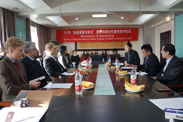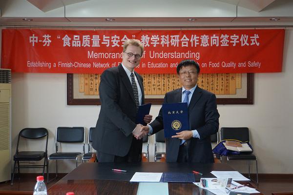 签字仪式由王培玉教授主持,他首先介绍了中国芬兰两国专家学者,随后芬兰TURKU大学数学与自然科学部部长Tapio Salakoski教授介绍了TURKU大学概况,他说欧洲地区的有关国家经过多年的发展,食品质量及安全监管已经积累了丰富的经验并建有国际上种类最多的各类食品标准及先进的检测手段。TURKU大学作为欧洲集中食品安全、食品科学研发、功能食品研发相应优势人才,既长于食品质量、食品营养科学、功能食品等方面的科研;在食品安全法规、食品安全监管教育、培训及相应领域一直有较好的平台。此次中芬合作涵盖全食品链的监控、食品质量、安全的教学及科研领域,有助于提高人群关注的食品安全问题。