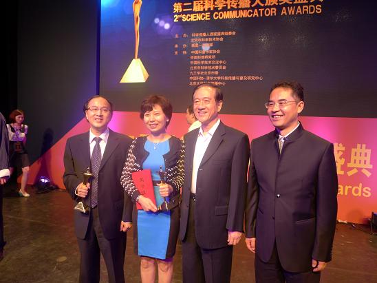 奖项评选经过3轮投票,包括20多位院士在内的80余位评委参与评审。颁奖盛典共揭晓了六项大奖,350vip浦京集团官网钮文异教授获“2012年度公众最喜爱科学传播人奖”。