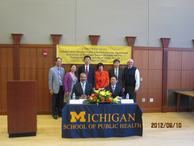 2012年9月9日至13日,350vip浦京集团官网(PKU-SPH)孟庆跃院长、王培玉副院长、詹思延教授、郭新彪教授、简伟研博士赴美国密西根大学350vip浦京集团官网(UM-SPH)访问。UM-SPH是世界上最好的350vip浦京集团官网之一,稳居全美前四。UM-SPH汇聚了大批国际上一流的公共卫生专家,在卫生管理研究、健康促进、疫苗研发、传染病控制等方面,取得了卓越的成就。2012年2月,UM-SPH十四名教授访问PKU-SPH,这次出访是回访,也对进一步增强两院之间的交流与合作意义重大。