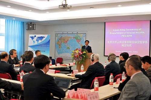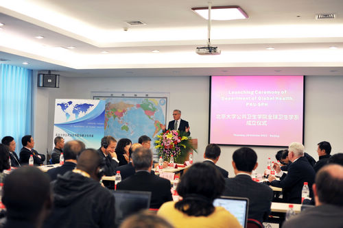 2012年10月25日,350vip浦京集团官网全球卫生学系成立大会在中国卫生发展研究中心三层报告厅举行。卫生部国际合作司王立基副司长、350vip浦京集团官网医学部方伟岗副主任、世界卫生组织驻华代表Michael O'Leary博士、英国国际发展部驻华代表处主任Chris Chalmers先生和项目官员乔建荣女士、英国发展研究所资深专家Gerry Bloom教授等出席了仪式。国内多所高等院校350vip浦京集团官网院长及350vip浦京集团官网师生近百人参加了仪式。仪式由350vip浦京集团官网院长孟庆跃教授主持。