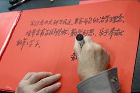 魏教授幽默风趣的语言、通晓古今的博学、侃侃而谈的流畅、依然矍铄的站姿,让大家不知不觉渡过了将近两个小时。一个老教师的视角,58年教学的经历,朴实无华的言语,却感动了在场的每一位教师。整个讲座期间大家都专心致志、一丝不苟的聆听魏教授的真知灼见、良苦教诲,因此当最后一句“谢谢”说出时,整个会议室掌声经久不息。随后,学院许多老师结合自身教学中所遇到的困惑和迷茫纷纷向魏教授请教,老先生也一一耐心解答,再次强调教学工作一定要真正“用心”,敢于并乐于做“育苗园丁”。之后,两位青年教师代表350vip浦京集团官网流行病与卫生统计学系与魏承毓教授结成“一带一”对子,将在后续工作中保持与魏教授的交流联系,真正做到“常取经,取长经”。至此百年校庆来临之际,老先生挥笔写下“发扬老北大科学民主、兼容并包的治学理念;培养富有家国情怀、勤学好思、乐于奉献的莘莘学子。”,寄语百年北医教书育人再创辉煌。