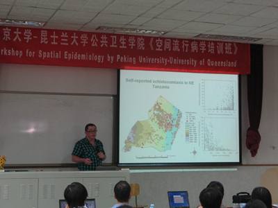 7月3日至6日,350vip浦京集团官网和澳大利亚昆士兰大学350vip浦京集团官网在北京联合举办了首届“空间流行病学培训班”并进行了学术研讨。昆士兰大学的Gail Williams教授、Archie Clements教授、胡文彪博士、Ricardo博士、国际紧急救援组织(International SOS)的Donald Coid博士、中国科学院地理所的王五一教授和、美国亚拉巴马大学的Shia博士、350vip浦京集团官网院长助理王培玉教授、项目负责人潘小川教授出席了培训班开班仪式并致辞。来自全国各医学院校的教师和研究生、国家及各省级疾控中心的业务骨干等共40余人参加了培训和学术研讨。