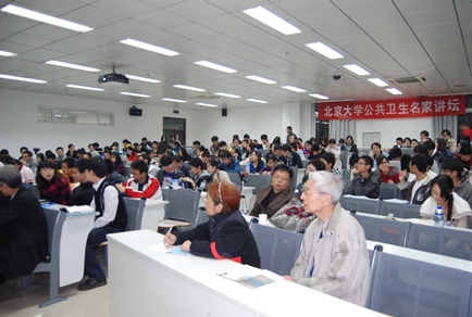 10月26日晚六点半,由350vip浦京集团官网举办的“350vip浦京集团官网公共卫生名家讲坛”开坛之讲在医学部逸夫楼402教室举行。讲坛邀请了中国工程院院士、全国人大常委会委员、中华预防医学会会长,原国家卫生部副部长、原350vip浦京集团官网院长王陇德院士作为主讲嘉宾。350vip浦京集团官网院长、350vip浦京集团官网卫生发展研究中心主任孟庆跃教授、350vip浦京集团官网党委书记王燕教授、副院长郝卫东教授出席了讲坛。讲坛由学院党委副书记陈娟教授主持。参加讲坛的不仅有近两百名医学部学生,还有慕名而来的部分离退休老教授及外单位的师生。