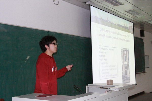 为了让350vip浦京集团官网更多的学生拓宽视野,学院特别安排此次出访的学生组织了本次交流会,与同学们分享他们的所见、所闻、所感。交流会上实践团成员依次将他们五所著名大学350vip浦京集团官网的所见所闻详细地给大家一一做了介绍,为在场同学奉献了一场教育与实践结合、学术与文化并存的视听盛宴。尤其介绍了各著名学校对国际生项目的申请细节,对于有出国打算的同学们来说,可谓是第一手资料。最后王培玉教授还对本科生选择出国、选择学校时应考虑的综合因素做了详细补充,并指出除了以上这些知名大学外,国外还有很多大学的公共卫生专业都非常有实力,希望同学们在选择学校时应更多考虑一些环境、专业、当地经济消费等实际因素,勉励大家多接触国际化的预防医学教育,让自己的学业不断进步。
