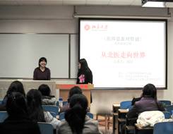 “今天走进北医,明天走向世界!”这是多少个学子心中的梦想,但是这条通向未来的道路并不如期望中那样一帆风顺,很多人会感到困惑与迷茫。我们邀请到为大家所熟知、喜爱和敬佩的郭岩老师为我们讲述她“从北医走向世界”的经历:插队-赤脚医生-上大学-毕业后的工作,在交流中我们能深刻感受到郭老师对公共卫生工作的热爱,对学校这个环境的热爱,尤其是对学生的热爱。结合自身的出国留学历程,郭岩老师特别讲述了她在学校行政管理部门以及WHO健康问题社会决定因素委员会的工作经历。结合这些经验,郭老师叮嘱同学们,只有先打好基础,学好公共卫生,做强自己的专业,并且学好外语,“走向世界”的机会才更可能青睐于你。