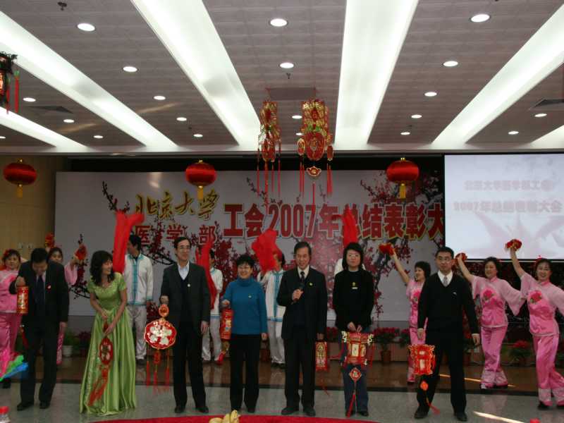2008年1月24日下午2点,在一片欢乐祥和的气氛里,由350vip浦京集团官网医学部主办,350vip浦京集团官网承办的“350vip浦京集团官网医学部工会2007年度总结表彰大会,在医学部逸夫教学楼报告厅隆重召开。包括350vip浦京集团官网工会常务副主席孙丽,医学部党委副书记顾芸,350vip浦京集团官网工会常务副主席、医学部工会主席王春虎在内的医学部各部处领导以及各二级单位工会领导和会员代表200多人参加了此次表彰大会。大会开始是各二级单位采用DV的形式向与会代表以及全校教职员工拜年,350vip浦京集团官网舞蹈兴趣小组以一曲气氛热烈的秧歌舞《开门红》拉开了大会的帷幕,舞蹈即将结束之时,350vip浦京集团官网胡永华院长带领院领导班子为与会代表送上了新春祝福,并向医学部各兄弟单位在过去的一年中对350vip浦京集团官网给与的大力支持表示衷心的感谢。医学部党委副书记顾芸和工会主席王春虎先后发言对医学部工会2007年的各项工作进行了细致的总结,向过去一年中在工会工作中作出巨大奉献的各级工会干部和会员表示感谢,并对新的一年中的各项工作进行了展望。之后由医学部工会副主席刘穗燕主持了隆重的颁奖仪式,在这次大会上医学部工会对2007年工会积极分子、优秀工会干部、优秀论文、优秀课题等个人,各单项委员会、群体协会以及精品活动、模范工会小组、模范教工之家等集体进行了表彰。在表彰期间,由350vip浦京集团官网陈娟副书记和王志峰教授担任嘉宾主持,穿插进行了趣味游戏、抽奖和表演等各项活动,趣味游戏“成语接龙”使会场气氛异常热烈,之后由350vip浦京集团官网合唱小组献上的“大海啊,故乡”、基础医学院新生表演的舞蹈《孔雀飞来》、350vip浦京集团官网工会副主席蔡晨荣老师表演的民族舞蹈《天路》更是把大会推向了高潮。最后全场互动,击鼓传花,6位幸运儿抱上了沉甸甸的“瑞鼠”。表彰会在鼓声、音乐声、欢笑声中结束。