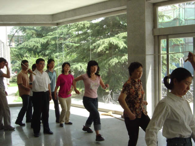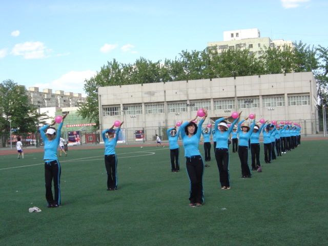 ★.为迎接明年的奥运会,医学院工会对这次团体操表演水平要求比以往高,参加人数比以往多。我院每个系领导和工会小组克服教学任务紧、科研任务重的困难,抽人力挤时间全力支持院工会活动,支持医学部第45届运动会。院领导徐善东身先士卒带头积极参加,和大家一起练踢毽子,帮助摇大绳。我们还有许多老师把自己的工作另行安排,为训练开绿灯。即便是无法便通(上课),也抽时间补。年轻教师高文静的父亲患癌症,正在肿瘤院化疗,她经常是去了医院,又赶回来训练。