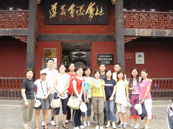 贵州遵义是一个举世瞩目的圣地。1935年1月15-17日在这里举行的中共中央政治局扩大会议纠正了左倾错误,确立了毛泽东在党中央和红军中的领导地位,使党和红军在极其危急的情况下,转危为安,是中国共产党从幼年走向成熟的标志。遵义会议会址位于遵义市老城子君路,这是一座砖木结构的两层楼房。1964年毛泽东主席亲笔题写“遵义会议会址”几个大字高悬在大门上方。当年的政治局扩大会议就在楼房主客厅的二楼举行,室内按当年会议室原貌进行布置。遵义会议会址后院是“遵义会议陈列馆”,现展出有200多件陈列品,有1935年1月遵义会议期间《红星报》对遵义县革命委员会成立盛况的报道,还有建国后,党和国家领导人参观遵义会议会址的照片和题词等。参观历史圣地,我们缅怀一代伟人毛泽东主席的丰功伟绩;同时,也更加坚定地拥护中国共产党的领导。同学们纷纷立志要发奋图强,以实际行动报效祖国!