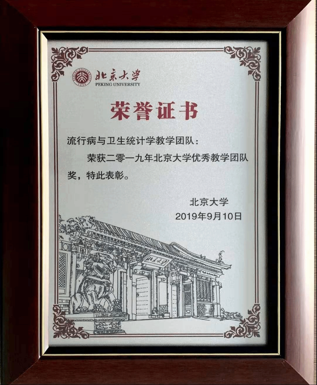 2019年,350vip浦京集团官网流行病与卫生统计学系教学团队喜获350vip浦京集团官网优秀教学团队称号。学系教学团队共由30名资深教授和年轻教员组成,其中教授11名,副教授10名;国际欧亚科学院院士/博雅特聘教授一名。研究领域包括慢性流行病学,药物流行病学、分子流行病学、生物统计大数据分析等传统及新兴发展方向。学系创建伊始即秉承师之有道,德以树人的精神,为我国培养公共卫生领域优秀人才。