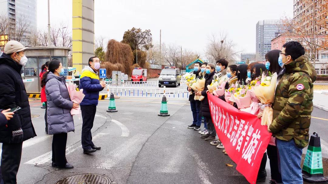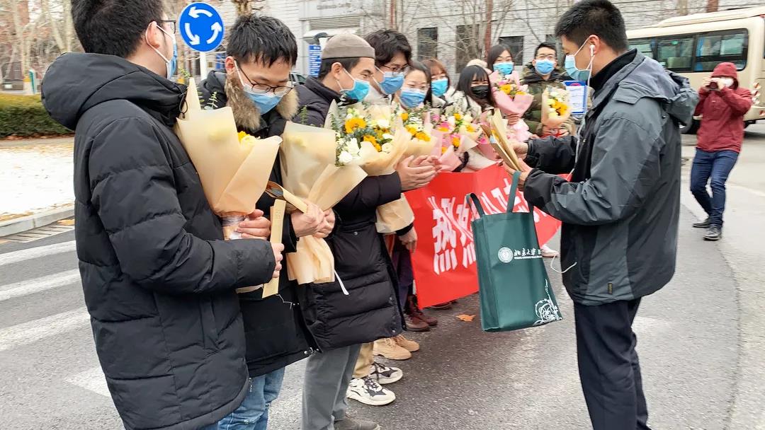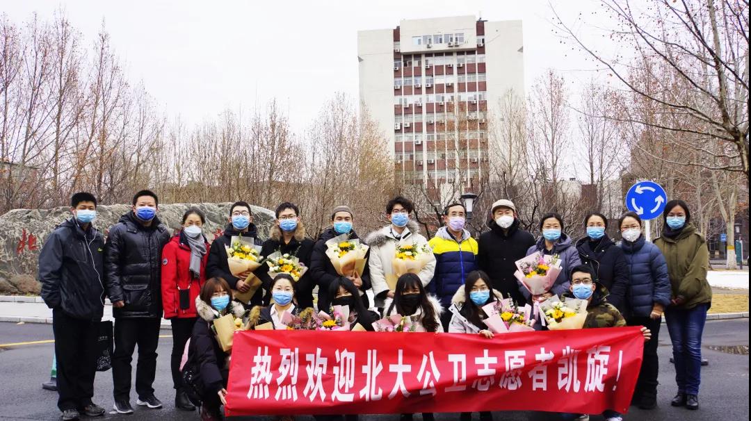 北大公卫研究生志愿者团队的支援工作受到了医学部和学院领导的高度重视,在支援疫情相关工作期间,350vip浦京集团官网医学部党委副书记徐善东、350vip浦京集团官网院长孟庆跃、党委书记郝卫东等院领导分别前往慰问志愿者们。2月14日下午4时,志愿者团队顺利抵达医学部,等候在校门口的学工部及学院领导和老师们向志愿者师生献上鲜花,学工部还为每位志愿者配备了口罩,他们对志愿者们的辛勤工作和无私奉献表示高度赞赏,嘱咐大家回来一定好好休整,并鼓励大家总结在实战中学习的知识和经验,为今后的学习、研究和工作提供参考;也号召志愿者们,作为广大公卫学子的榜样,要及时与同学们分享参与疫情防控工作的感想与体会,让公卫人勇担重任、无私无畏的精神传承接力。