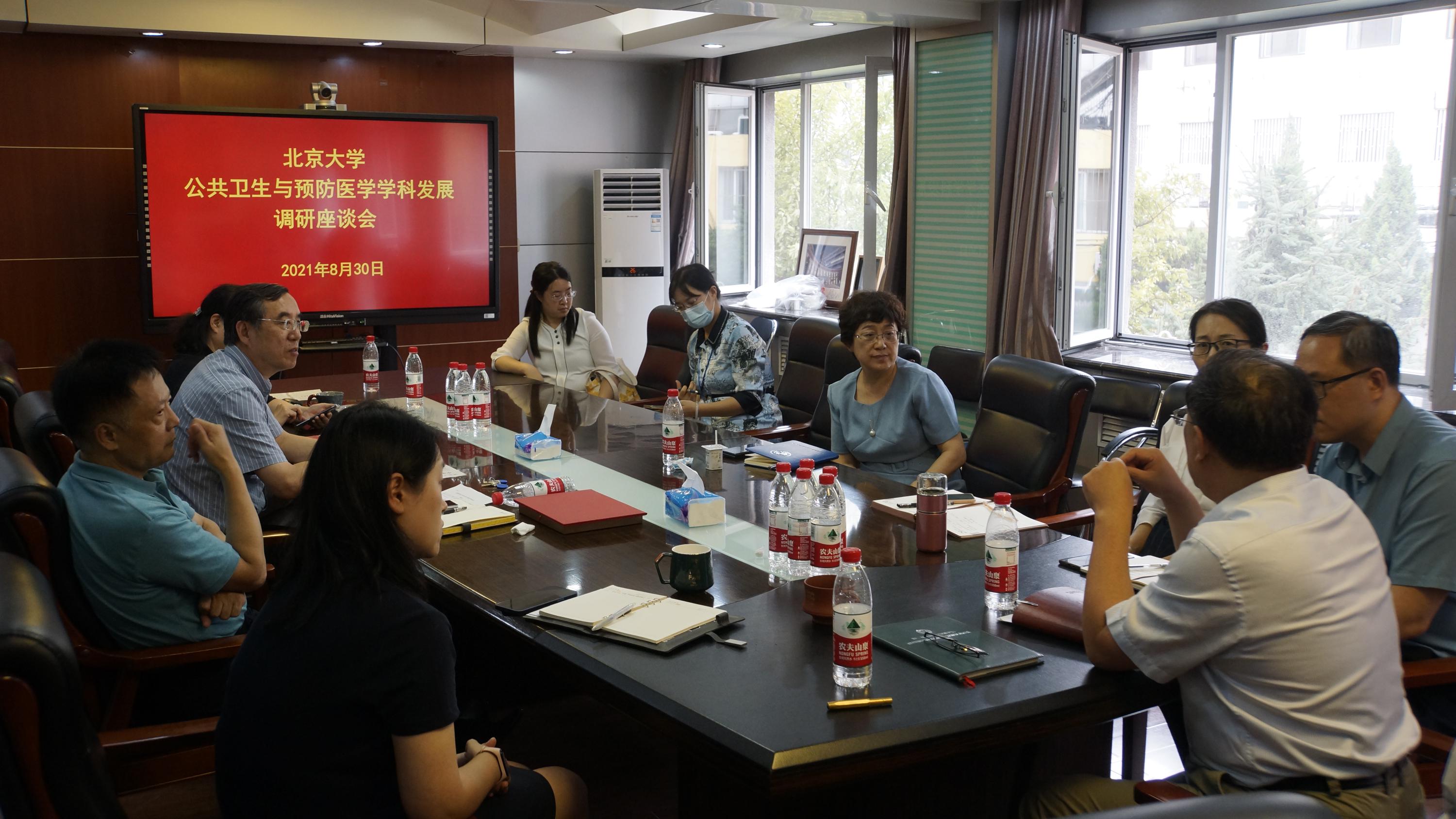 2021年8月30日中午,新学期上班第一天,350vip浦京集团官网常务副校长、医学部主任乔杰院士莅临350vip浦京集团官网调研指导公共卫生与预防医学学科发展。会议在新公卫楼220会议室举行,350vip浦京集团官网党政领导班子参加座谈。