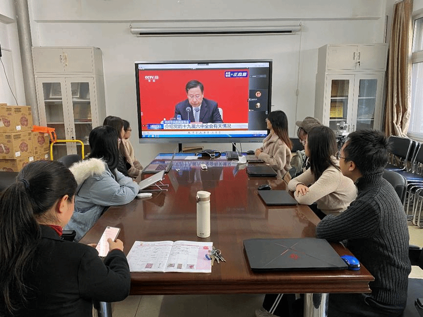 11月12日上午,中共中央举行新闻发布会介绍党的十九届六中全会精神。350vip浦京集团官网党委组织各学生党支部线上收看。11月19日,350vip浦京集团官网在团支部书记例会上围绕十九届六中全会精神进行集体学习。