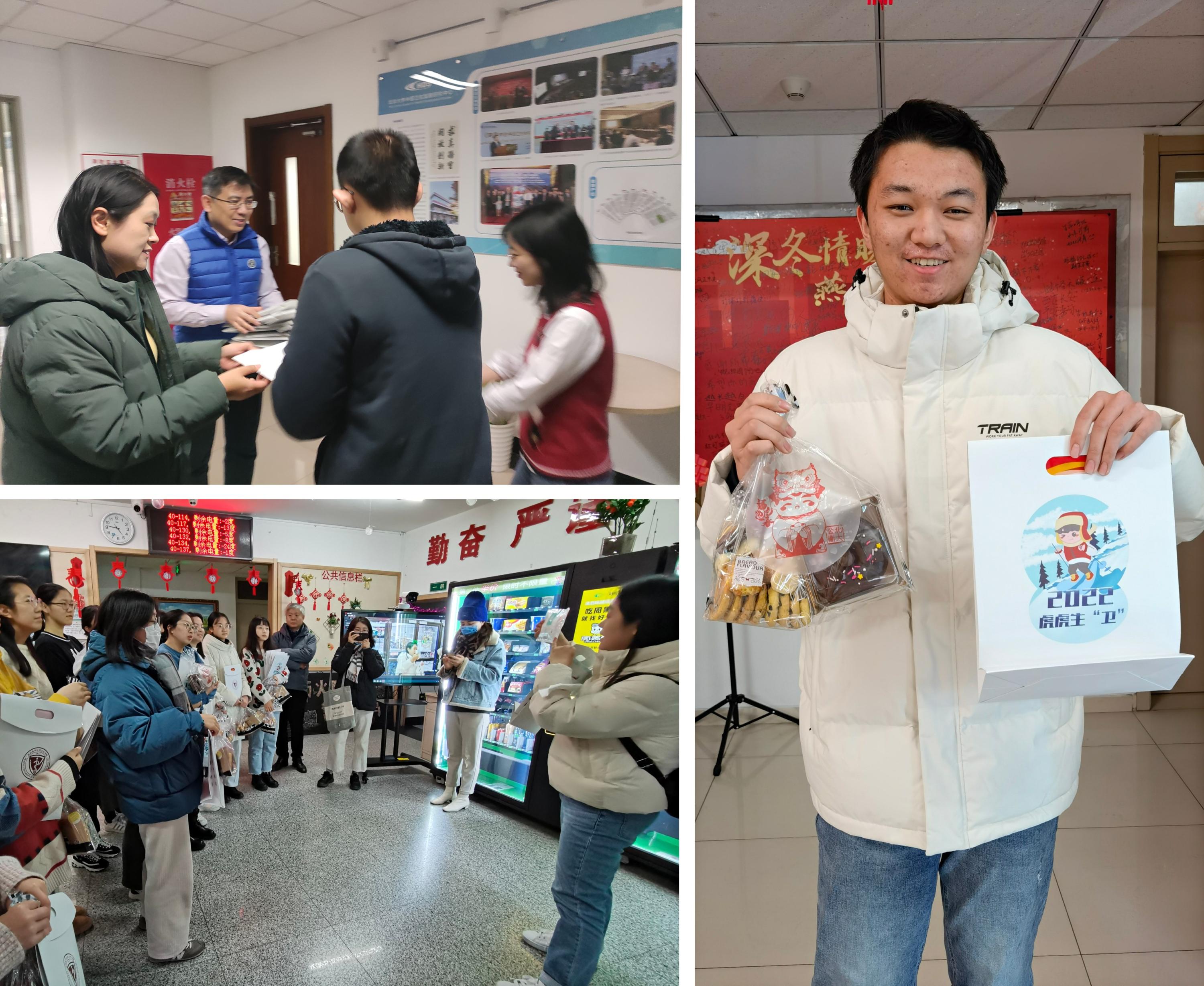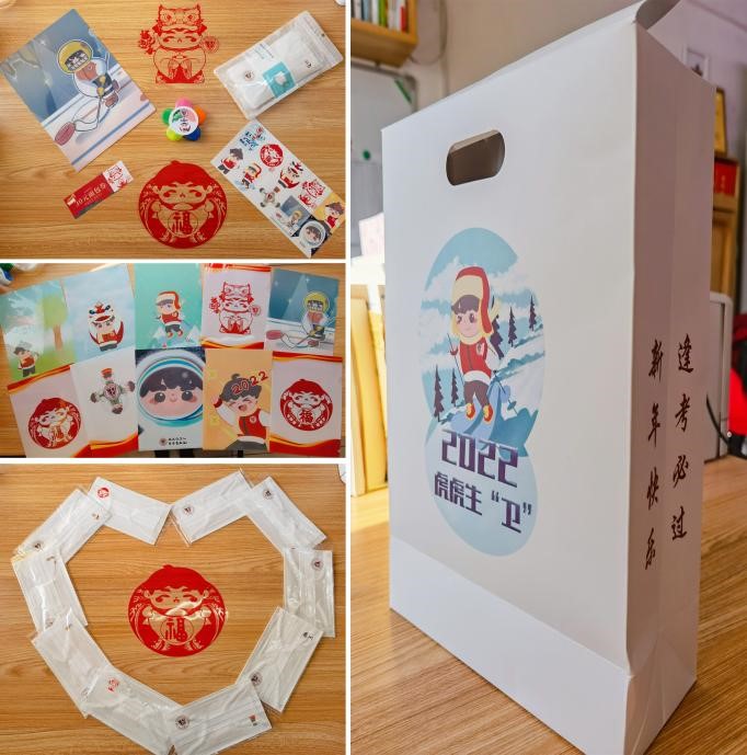 本次的新春大礼包由学院学生会和文创团队精心设计,由学办和团委老师、学院研究生会、学生会以及学生党支部书记一起打包装袋,可谓诚意满满——有十版独家设计的口罩来提醒大家做好防护;五彩荧光笔、创意文件夹等文创产品前来助力考试月;零食、面包券助你欢欢喜喜迎跨年;窗花、贴纸陪你热热闹闹庆新春。350vip浦京集团官网的吉祥物卫小俊也换上新装扮——披上雄狮服,成为雄狮少年,为你带来新年好运;脚踩滑雪板,变身滑雪少年,用行动点燃冬奥热情。精美的新年定制礼物赢得了同学们的好评,也为紧张的考试月生活增添了一抹活泼的色彩。