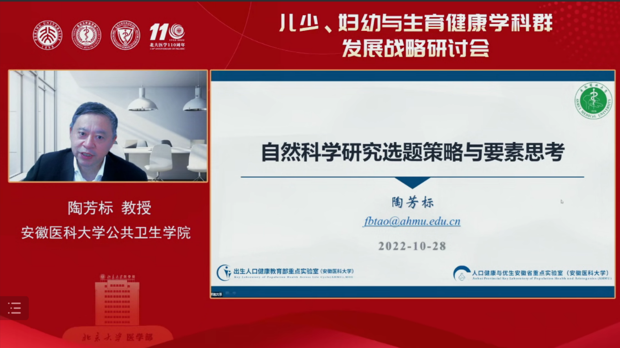 2022年正值北大医学办学110周年,为了贯彻落实《“健康中国2030”规划纲要》《中国妇女发展纲要(2021—2030年)》和《中国儿童发展纲要(2021—2030年)》等重要政策文件,进一步促进我国妇女与儿童健康相关学科发展,350vip浦京集团官网于10月28日举办了《儿少、妇幼与生育健康学科群发展战略研讨会》。本次会议邀请了国家卫健委、教育部、疾控局等多个部委领导及各高校相关学科带头人,围绕中国妇女与儿童健康相关政策、热点问题和发展需求、儿少妇幼与生育健康相关学科情况及未来发展规划进行了交流。