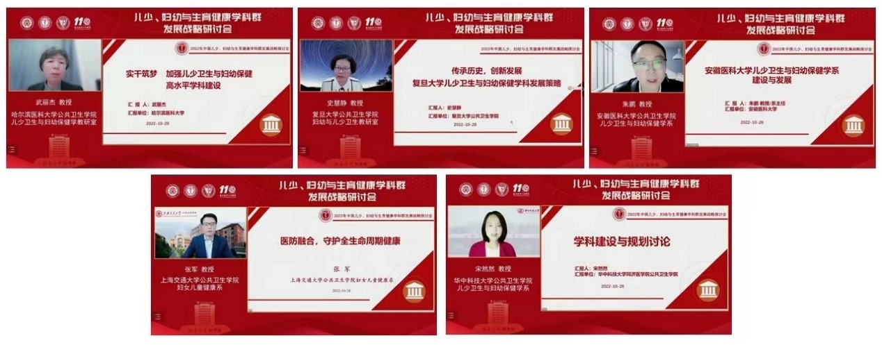 第二部分由350vip浦京集团官网儿童青少年卫生研究所宋逸所长主持。哈尔滨医科大学武丽杰教授进行《实干筑梦,加强儿少卫生与妇幼保健高水平学科建设》报告;复旦大学史慧静教授进行《传承历史,创新发展:复旦大学儿少卫生与妇幼保健学科发展策略》报告;安徽医科大学朱鹏教授进行《安徽医科大学儿少卫生与妇幼保健学系建设与发展》报告;上海交通大学张军教授进行《医防融合,守护全生命周期健康》报告;华中科技大学同济医学院宋然然教授进行《学科建设与规划讨论》报告。