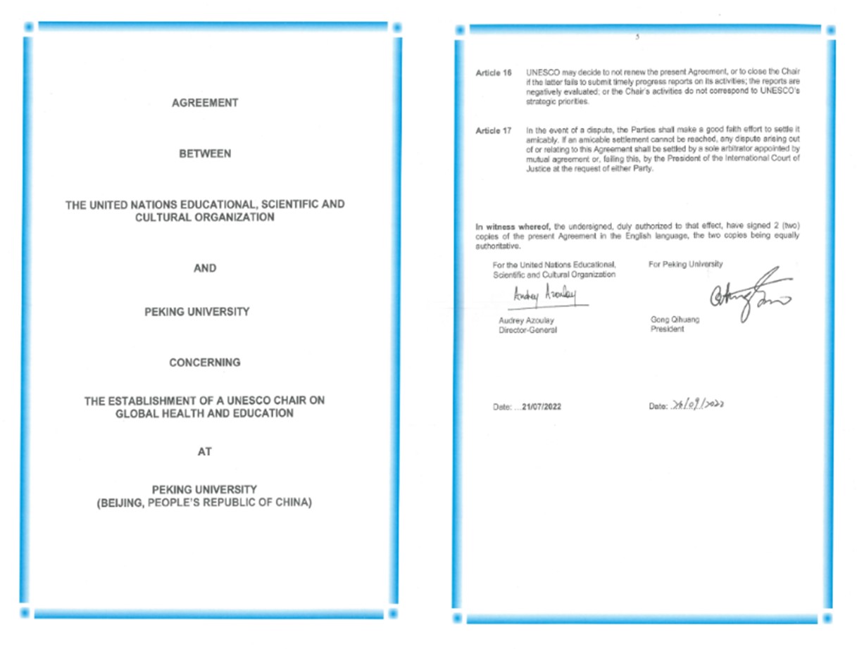 (图1 350vip浦京集团官网-联合国教科文组织“全球健康与教育”教席协议)
