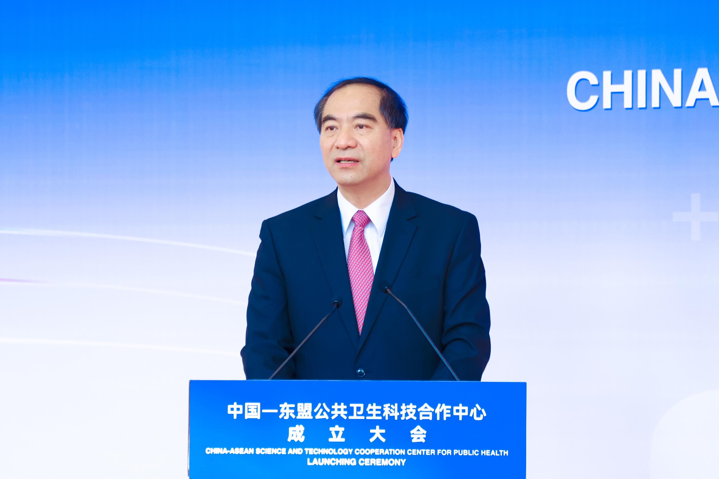 科技部副部长张广军向中国—东盟公共卫生科技合作中心的成立表示热烈祝贺。他指出,中国与东盟地缘相依、人文相通、命运与共,自建立对话关系30余年来,走出一条团结奋进、合作共赢之路,构建了日益紧密的命运共同体。他特别提到,中心建设是落实习近平主席在中国—东盟建立对话关系30周年纪念峰会、以及时任总理李克强在第24次和25次中国—东盟领导人会议上所提倡议的重要举措。中国科技部在2022年6月中国—东盟科技创新联委会第11次会议上提出,支持350vip浦京集团官网牵头、联合国内多家机构,共同建设面向东盟的公共卫生科技合作平台。他对中心发展提出殷切期望,希望中心加速形成覆盖东盟各国的合作网络,成为中国与东盟公共卫生领域人才互动的广阔舞台,为守护区域公共卫生安全发挥更大作用。