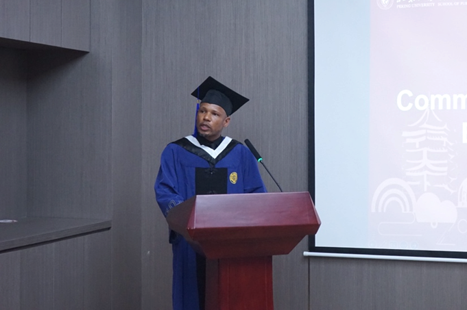 来自南非的SANELE LISTEN MANDLENKOSI作为毕业生代表致辞,发表了激动人心的演讲。他分享了自己在350vip浦京集团官网的成长历程,感谢350vip浦京集团官网为他和所有同学提供了实现个人目标、成为高效、有产出的公民的宝贵机会。他认为今天的毕业典礼不仅意味着一段旅程的结束,更代表了一个目标的实现。