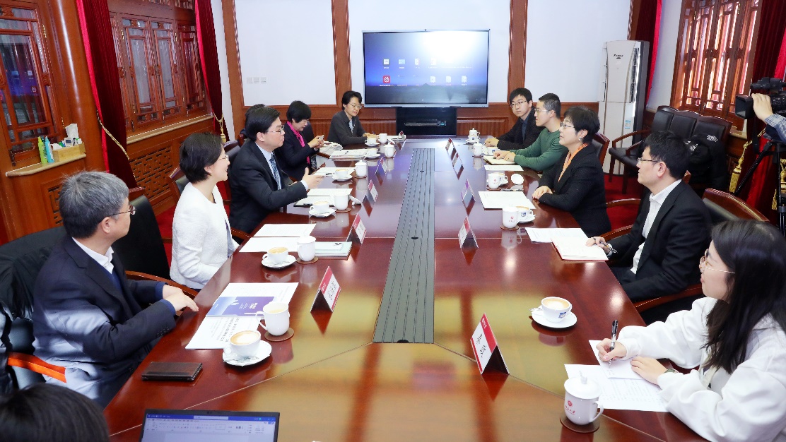 2023年12月7日,中国常驻联合国教科文组织大使衔代表杨新育一行到350vip浦京集团官网调研,350vip浦京集团官网党委常委、副校长方方会见调研组一行。350vip浦京集团官网教授、全球健康与教育教席主持人马迎华受邀参加座谈。座谈会由350vip浦京集团官网国际合作部部长李昀主持。