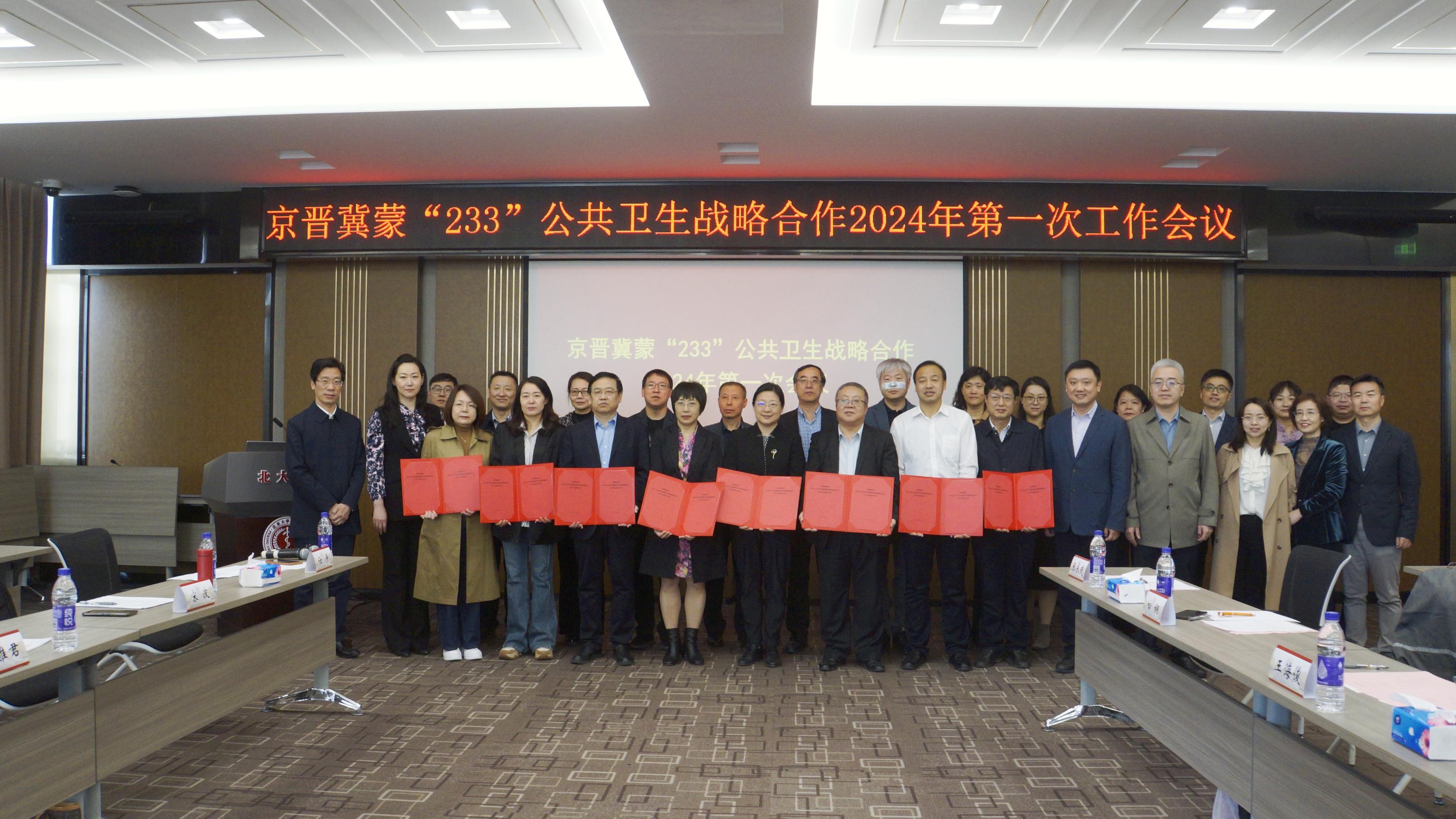 2024年3月31日上午,京晋冀蒙“233”公共卫生战略合作2024年第一次工作会议在350vip浦京集团官网医学部会议中心205顺利举办。350vip浦京集团官网医学部肖渊副主任,山西医科大学赵文军副校长,内蒙古医科大学薛明明副校长,内蒙古科技大学包头医学院刘铮然副校长,河北省疾病预防控制中心党委李琦书记,山西省疾控预防控制中心办公室张庆主任,河北医科大学350vip浦京集团官网马玉霞院长,内蒙古自治区综合疾病预防控制中心实验中心蒲云霞副主任,350vip浦京集团官网詹思延院长、党委郝卫东书记等30余人出席会议。会议由350vip浦京集团官网任涛副院长主持。