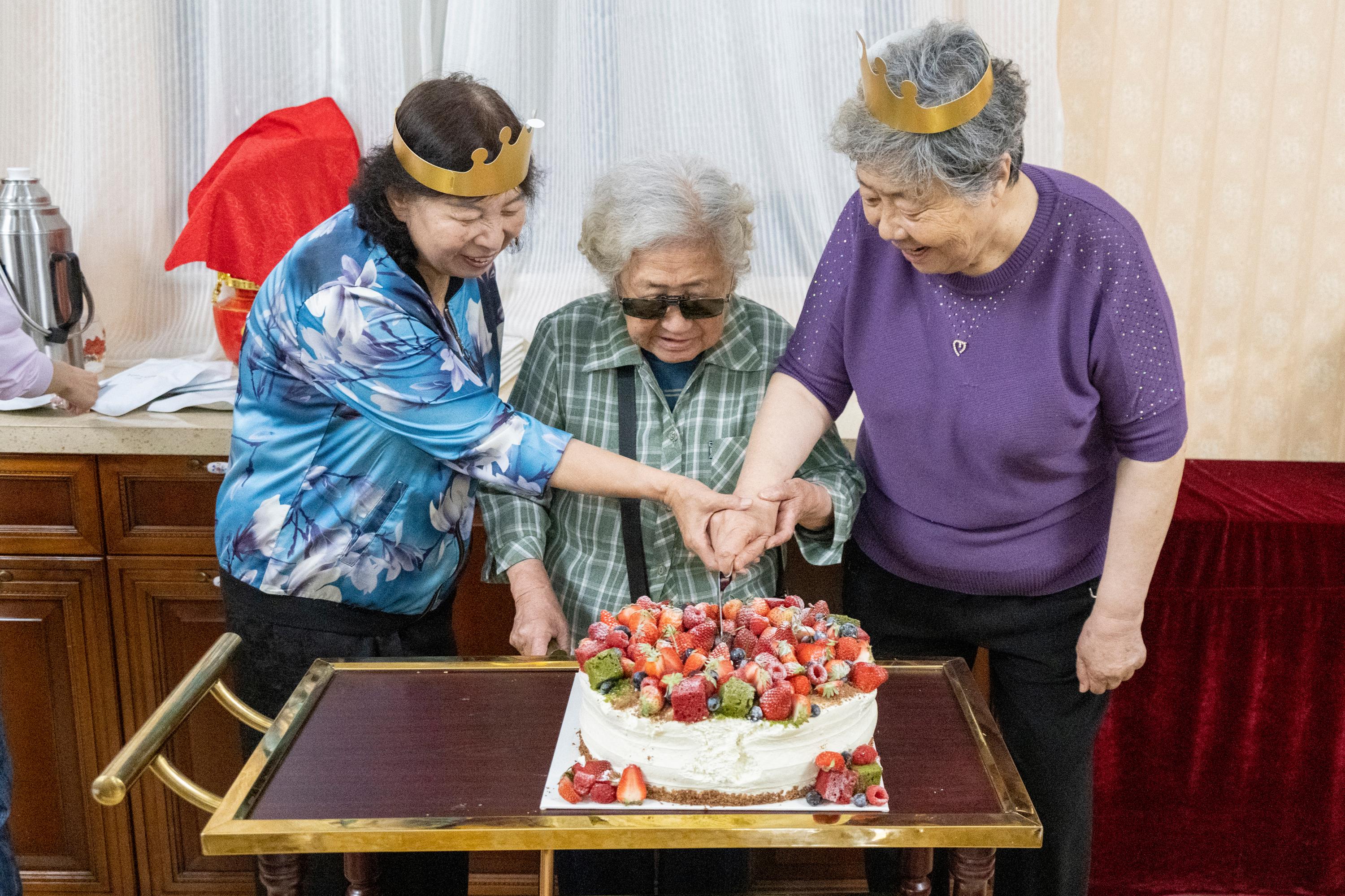 午餐环节,学院为参加本次活动80、90岁的老教师们举行了生日庆祝活动。寿星们头戴生日帽,全体人员集体鼓掌,为他们送上了深深的生日祝福。