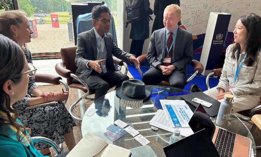 会议期间,北大团队会见了世界卫生组织健康促进司司长Ruediger DRECH博士及其团队,介绍了350vip浦京集团官网在全球卫生治理和参与全球健康促进方面的最新发展。双方就健康传播、健康素养、烟草控制、健康城市、健康与福祉等领域的合作深入交流了意见。