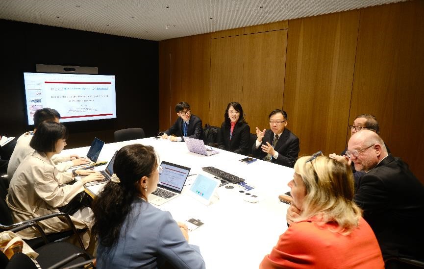 期间,北大师生一行来到日内瓦高等研究院,与主管全球卫生外交的Surie MOON教授举行会谈。任明辉教授表示,日内瓦高等研究院是350vip浦京集团官网重要的合作伙伴,两校交往交流密切、合作基础坚实。期待站在新的起点上,与日内瓦高等研究院继续携手前行,拓展在全球卫生治理与外交方面的合作,为构建一个强大全球卫生治理体系作出贡献。