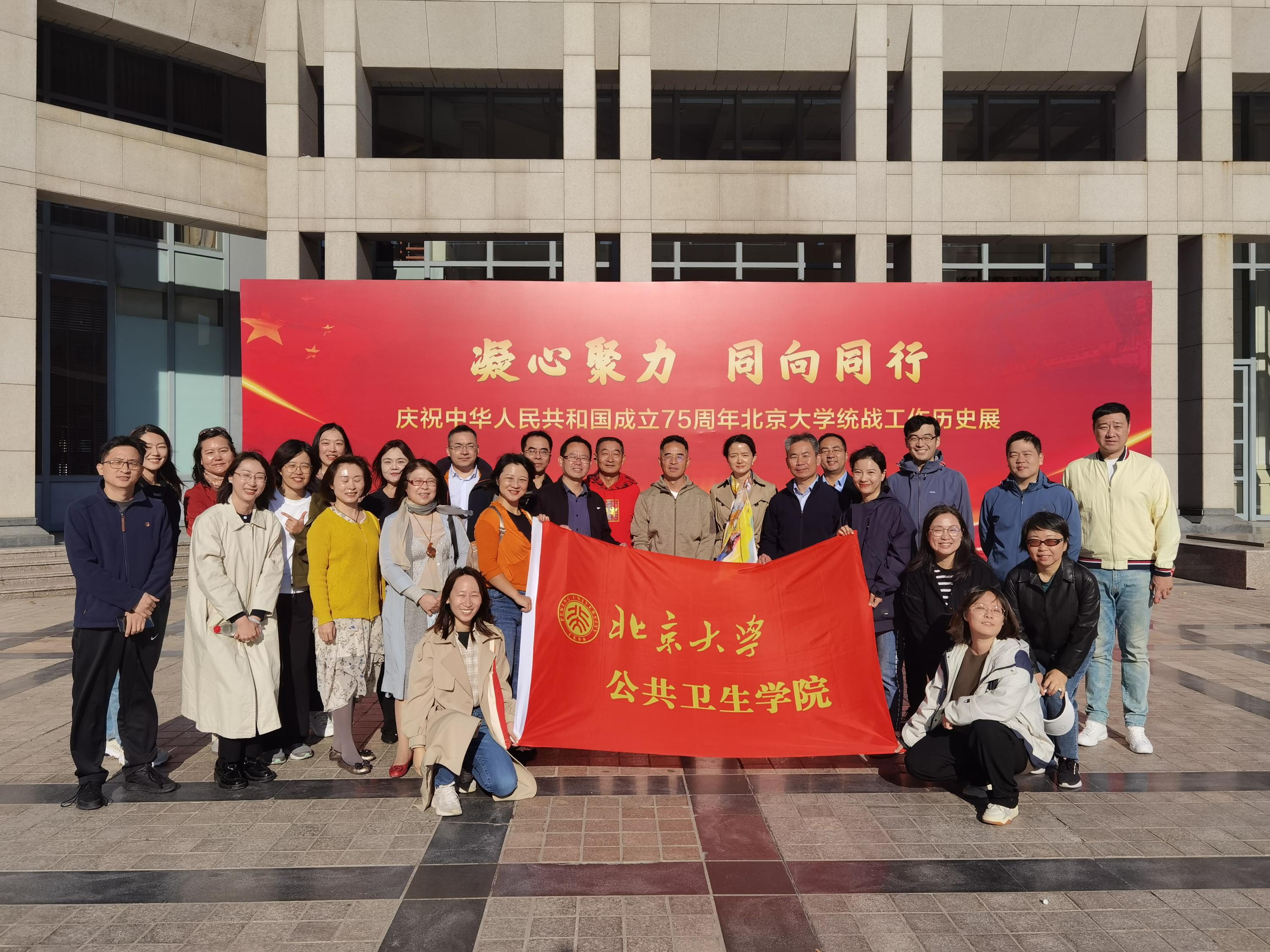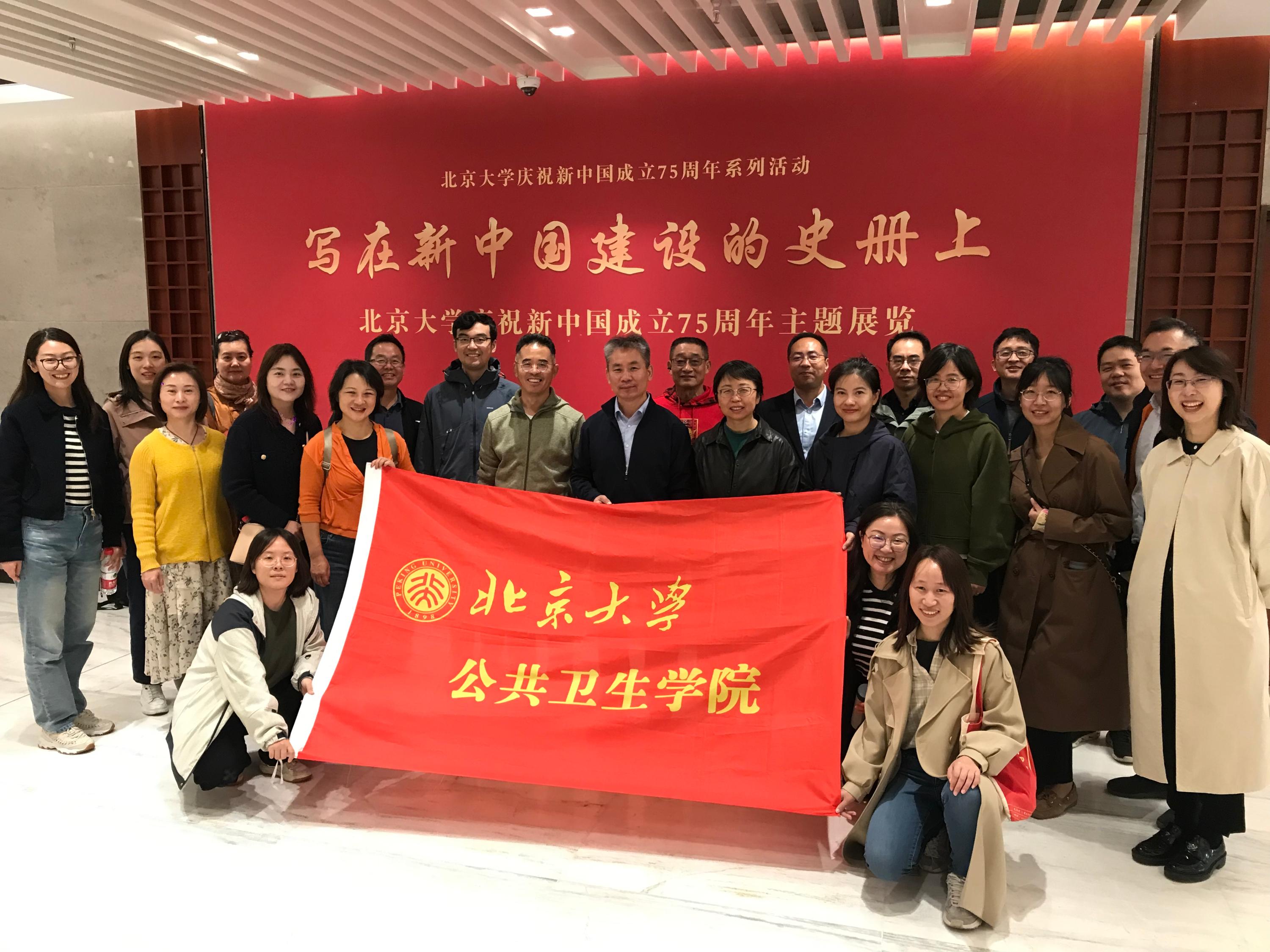 首先,全体人员前往350vip浦京集团官网百周年纪念讲堂参观“凝心聚力 同向同行--庆祝中华人民共和国成立75周年350vip浦京集团官网统战工作历史展”。350vip浦京集团官网的统战工作在长期的奋斗历程中,积淀了深厚的基础,形成了优良的传统,涌现出一大批与中国共产党风雨同舟、真诚合作、贡献卓著的著名党外代表人士。在350vip浦京集团官网党委统战部副部长高慧芳老师的带领下,通过对文字、照片背后史料内容的情景式融入讲解,大家对北大统战工作“筚路蓝缕,共创伟业”、“民主党派、各美其美”、“拥抱时代、绽放华彩”、“统战历史、光影记忆”四大板块内容有了新的理解和认识,对北大党外人士在教学、科研、社会服务等方面取得的突出成就表示由衷赞叹和自豪,表示新时代的北大公卫人应从历史中汲取智慧和力量,在以中国式现代化推进强国建设、民族复兴的新征程上凝心聚力、同向同行、团结奋进,为建设健康中国作出新贡献。