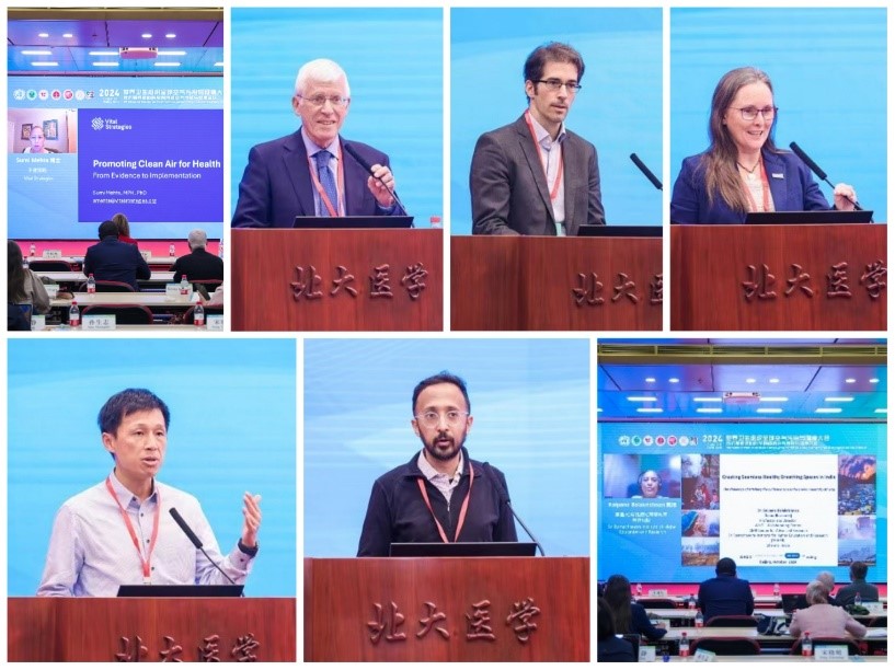 大会开幕式上,350vip浦京集团官网医学部副主任王嘉东、WHO环境健康司司长Maria Neira、WHO驻华代表处协调员乔建荣、国家疾病预防控制局卫生免疫司副司长李筱翠、中国气象局科技与气候变化司副司长张兴嬴、生态环境部法规与标准司环境健康处处长李明霞分别致辞。王嘉东表示,当前全球正面临前所未有的环境与健康挑战,人类健康高质量保障已经成为全球亟待解决的核心科学问题,希望本次会议能够有效推动空气污染、气候变化、能源和健康之间的复杂关系研究,推动全球解决方案制订与实施。Maria Neira指出,尽管仍面临诸多挑战,北京的空气质量已显著改善,而这蔚蓝的天空离不开科学家的共同努力,并将公共健康问题提上环境政策制订的优先议程;她强调WHO始终致力于向清洁能源转型的健康政策制订,并基于空气污染相关疾病负担评估政策在全球的执行效果。乔建荣认为,中国在改善空气质量方面取得的显著成就得益于政府的强有力的承诺、政策措施、和协调研究行动;面对全球环境污染和气候变化的公众健康挑战,她希望通过此次会议进一步加强中国与国际社会合作,推动共同应对气候变化和空气污染的全球行动。李筱翠介绍了政策、研究和国际合作在我国环境健康工作中的作用,特别是健康促进工作已经成为近期发布的《国家气候变化健康适应行动方案 (2024—2030年)》重要组成部分。张兴嬴表示,为应对全球气候变化、森林野火和空气污染的健康威胁,中国气象局为中低收入国家提供环境监测数据,助力提升全球气候健康风险预警能力。李明霞表示,国家生态环境部门坚持推进精准治污、科学治污和依法治污持续改善生态环境质量,并将逐步推进构建环境健康风险评估体系。开幕式由350vip浦京集团官网医学部350vip浦京集团官网院长詹思延主持。