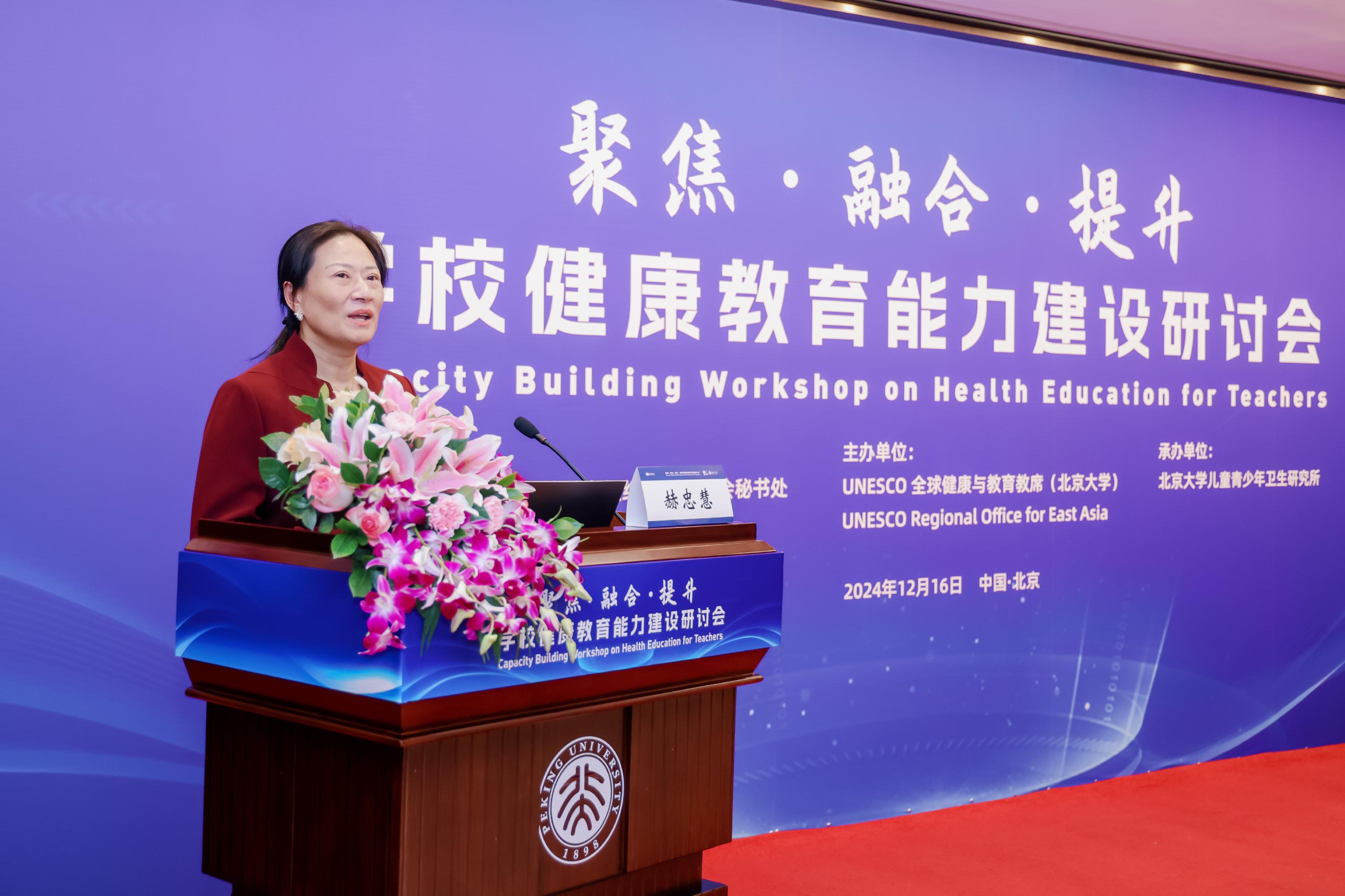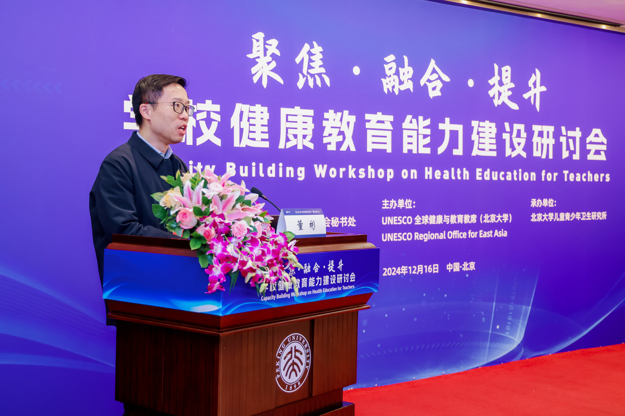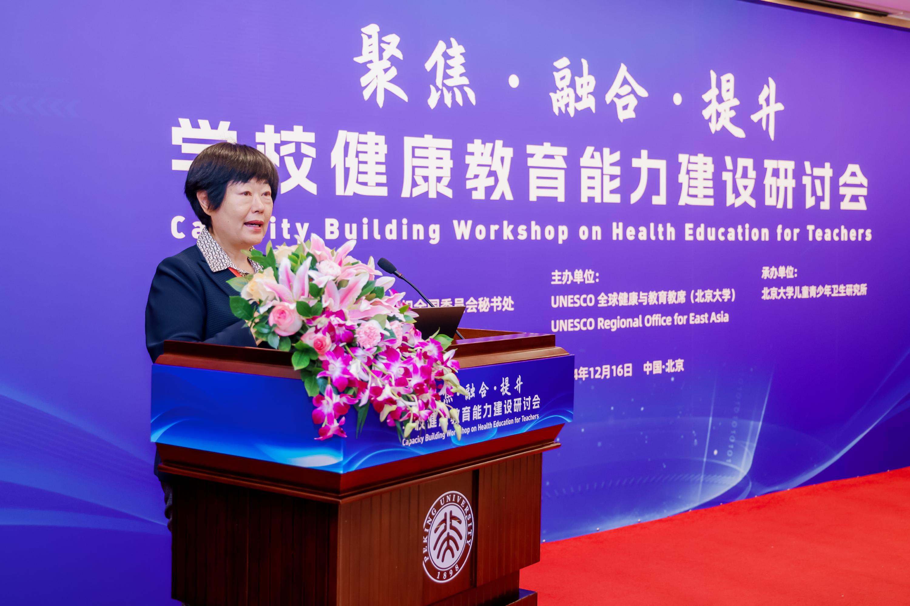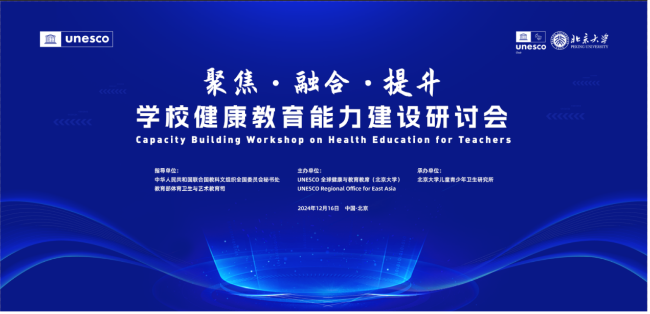 2024年12月16日,由中华人民共和国联合国教科文组织全国委员会秘书处、教育部体育卫生与艺术教育司指导,联合国教科文组织全球健康与教育教席(350vip浦京集团官网)和联合国教科文组织驻华代表处主办,350vip浦京集团官网儿童青少年卫生研究所承办的“聚焦・融合・提升:学校健康教育能力建设研讨会”在350vip浦京集团官网顺利召开。