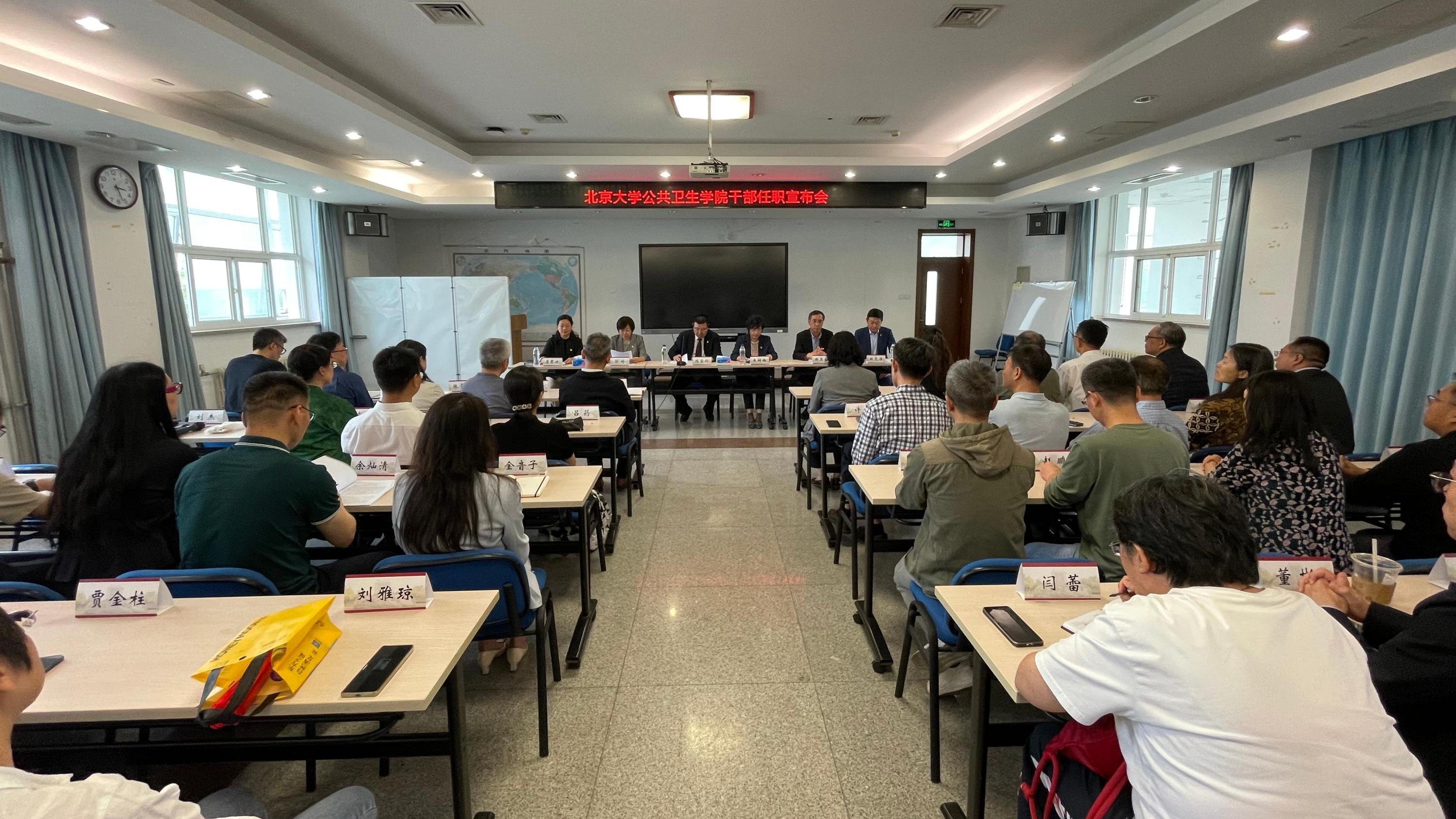 郝元涛作任职表态发言。他感谢学校和医学部给予的信任和支持,感谢郝卫东书记和各位同事一直以来辛苦且卓有成效的付出。他表示,将落实立德树人根本任务,团结服务师生,带领师生守正创新,发扬北大公卫优良传统,进一步做好战略谋划,聚焦公共卫生前沿问题和国家重大战略需求,为守护人民群众生命健康筑牢红色堡垒。