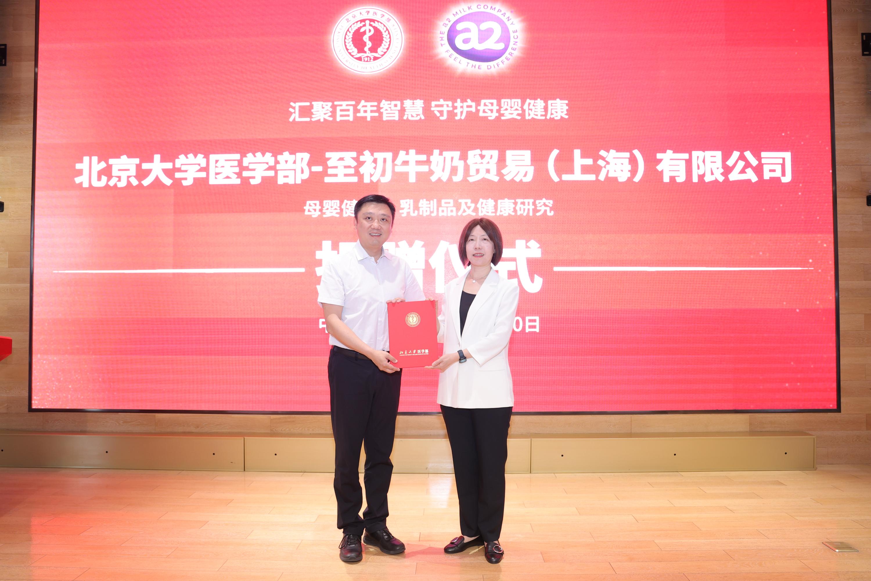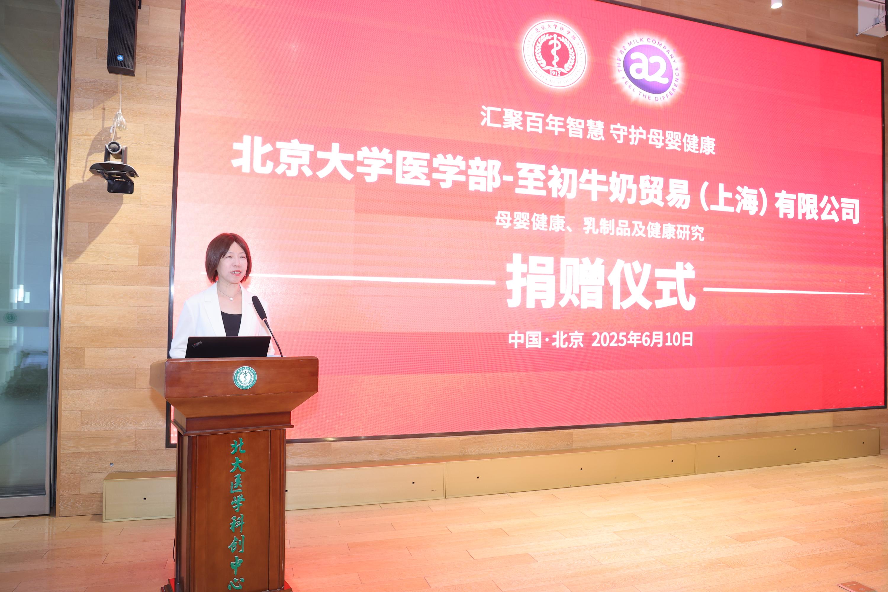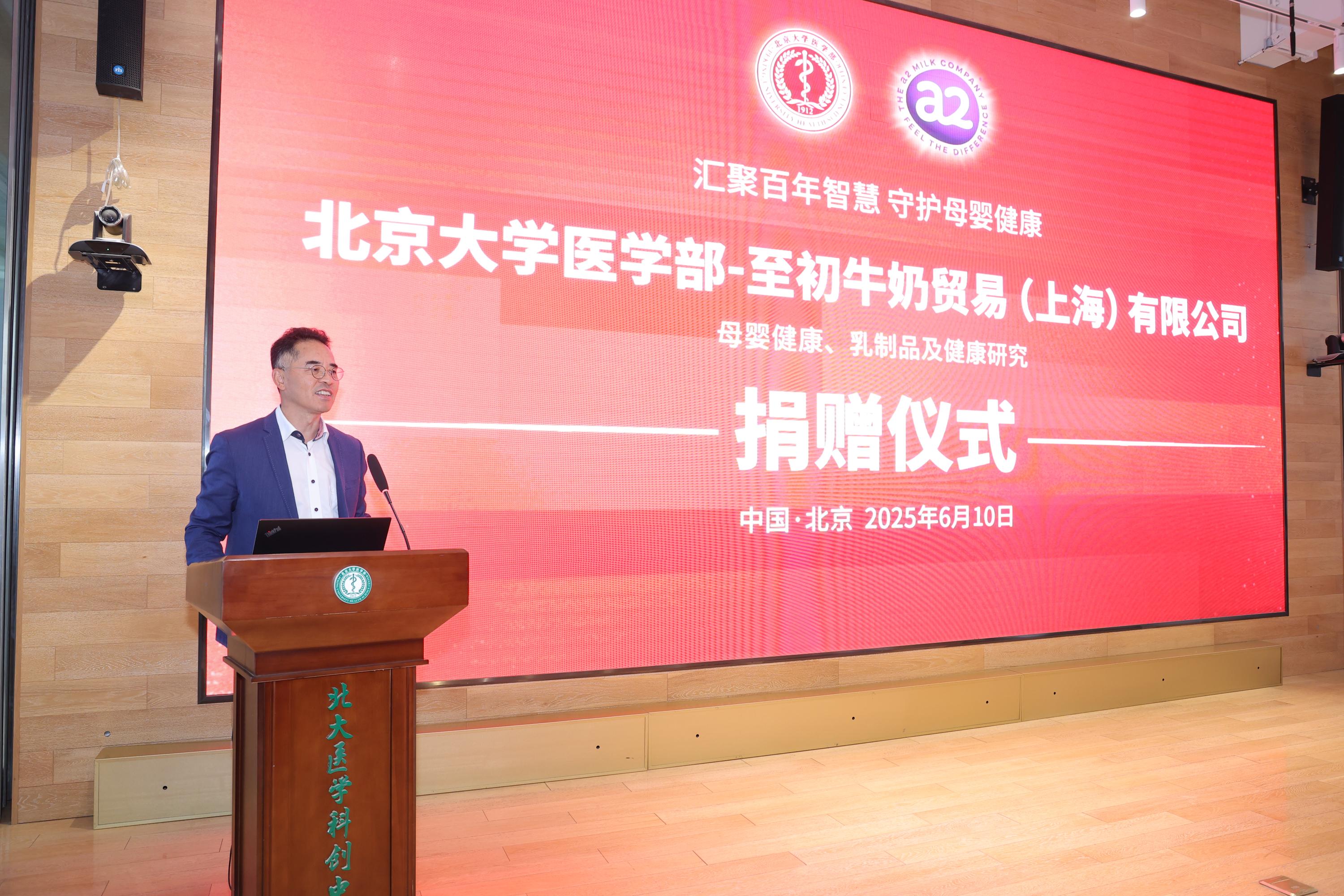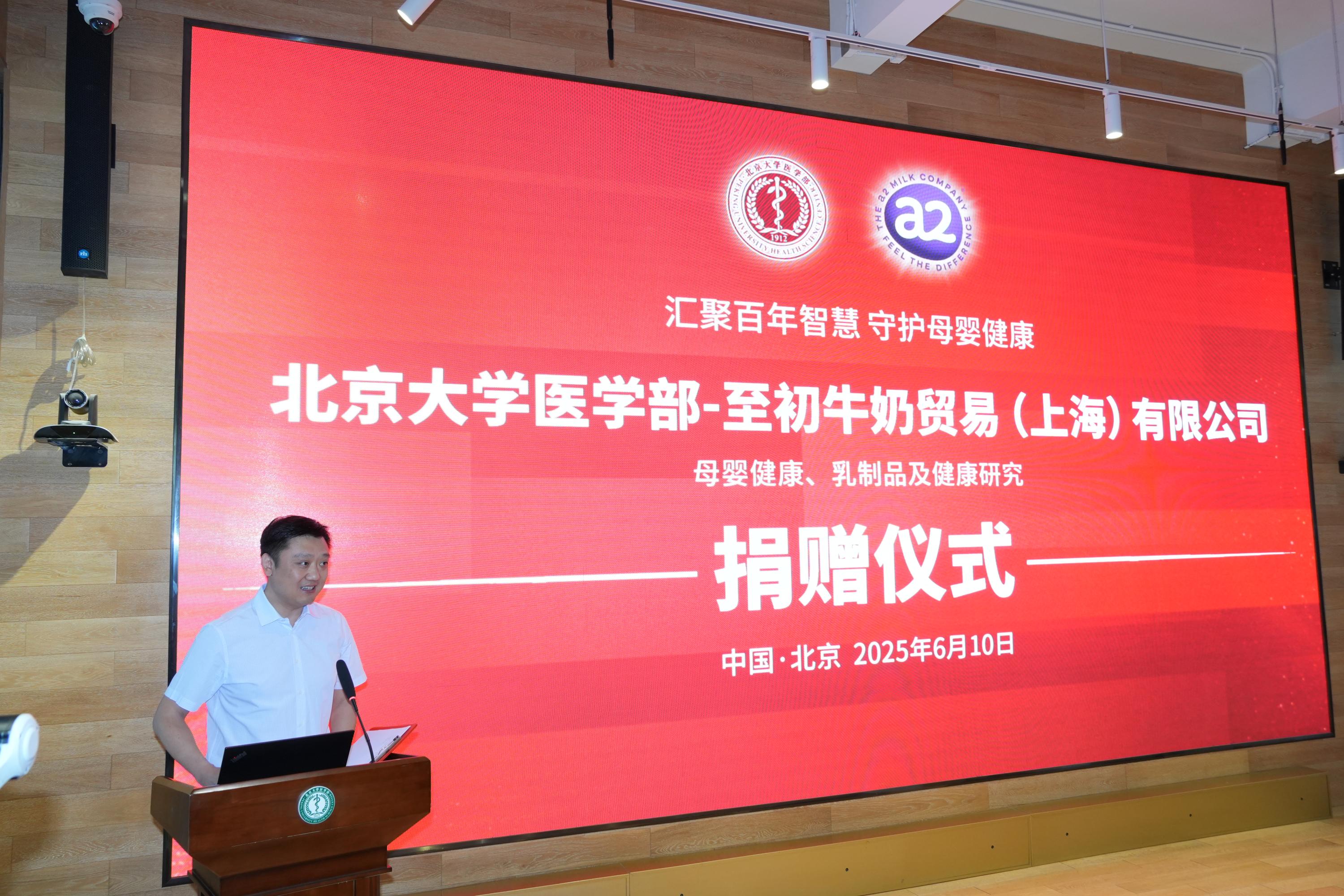 2025年6月10日上午,350vip浦京集团官网医学部至初牛奶母婴健康、乳制品及健康研究项目捐赠仪式在医学部科创中心举行。350vip浦京集团官网医学部副主任肖渊、350vip浦京集团官网副院长王海俊、医学部校友办暨基金办主任孙莉莉、350vip浦京集团官网营养与食品卫生学系马冠生教授、至初牛奶贸易(上海)有限公司副总裁王海燕及嘉宾代表、医学部师生出席。王海俊副院长主持仪式。