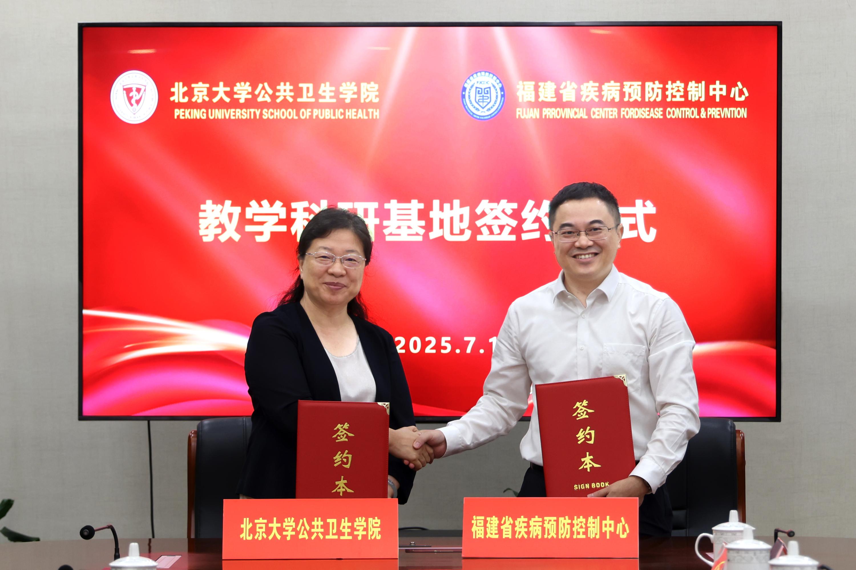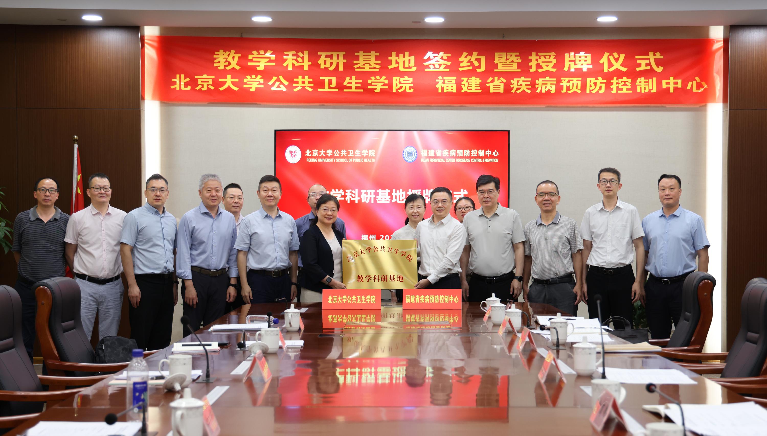 7 月 10 日,院长詹思延、党委书记郝元涛、副院长任涛、党委副书记苏鸿、党委副书记张景怡、院长助理刘杰到访福建省疾病预防控制中心正式挂牌。福建省疾控中心党委书记翁铖,福建省疾控中心领导及相关部门负责人出席活动。双方就教学科研相关的工作经验进行深入交流后,签署教学科研基地合作协议,并进行了基地挂牌。福建省疾病预防控制中心正式成为350vip浦京集团官网教学科研基地。