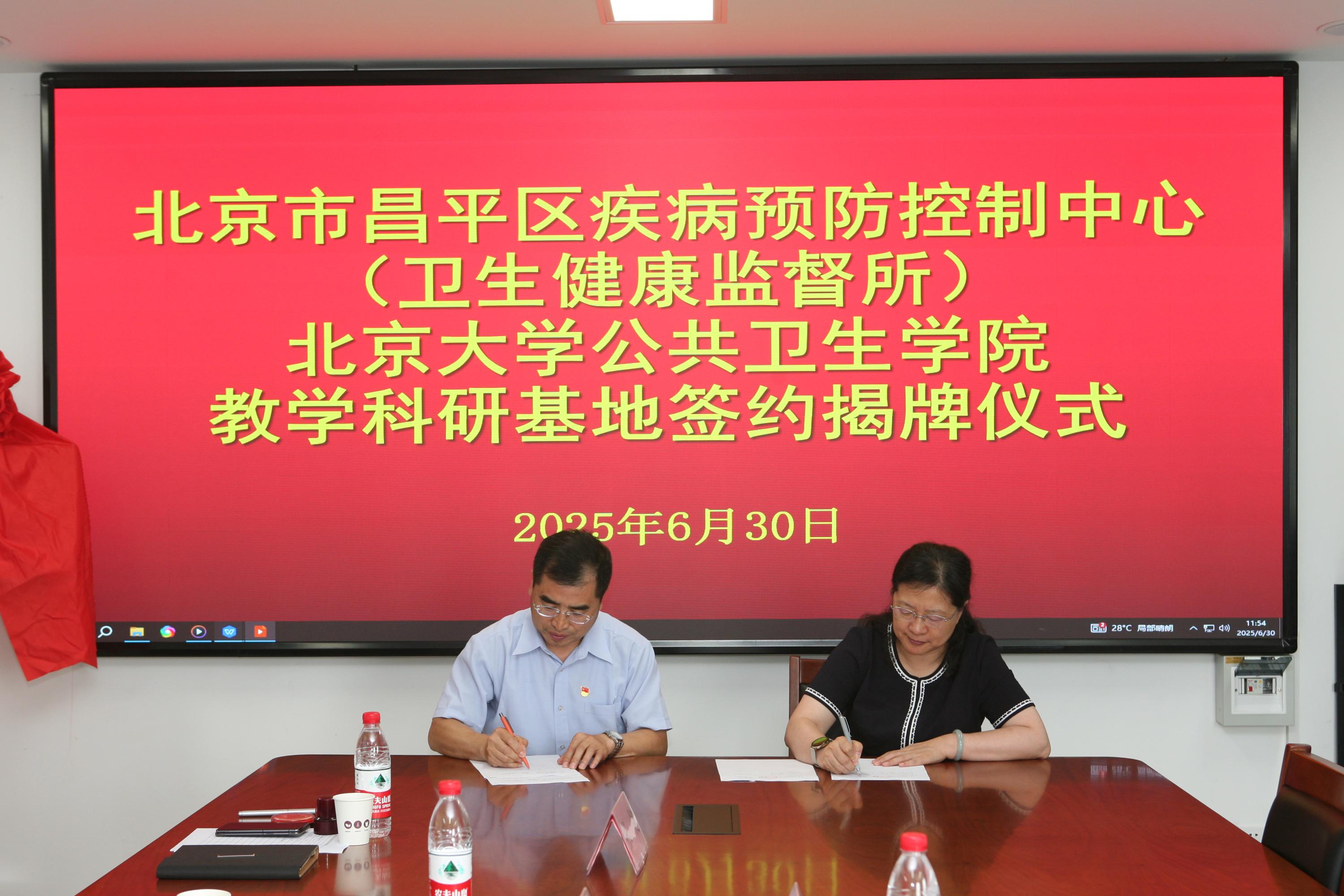 6 月 30 日,院长詹思延、党委副书记张景怡、院长助理刘杰到访北京市昌平区疾病预防控制中心,昌平区疾控中心主任段玉林、副主任芦丹等相关领导和工作人员参加活动,双方就教学科研方面的工作进行了深入的交流座谈,在达成共识后签署教学科研基地协议并挂牌。北京市昌平区疾病预防控制中心正式成为350vip浦京集团官网教学科研基地。
