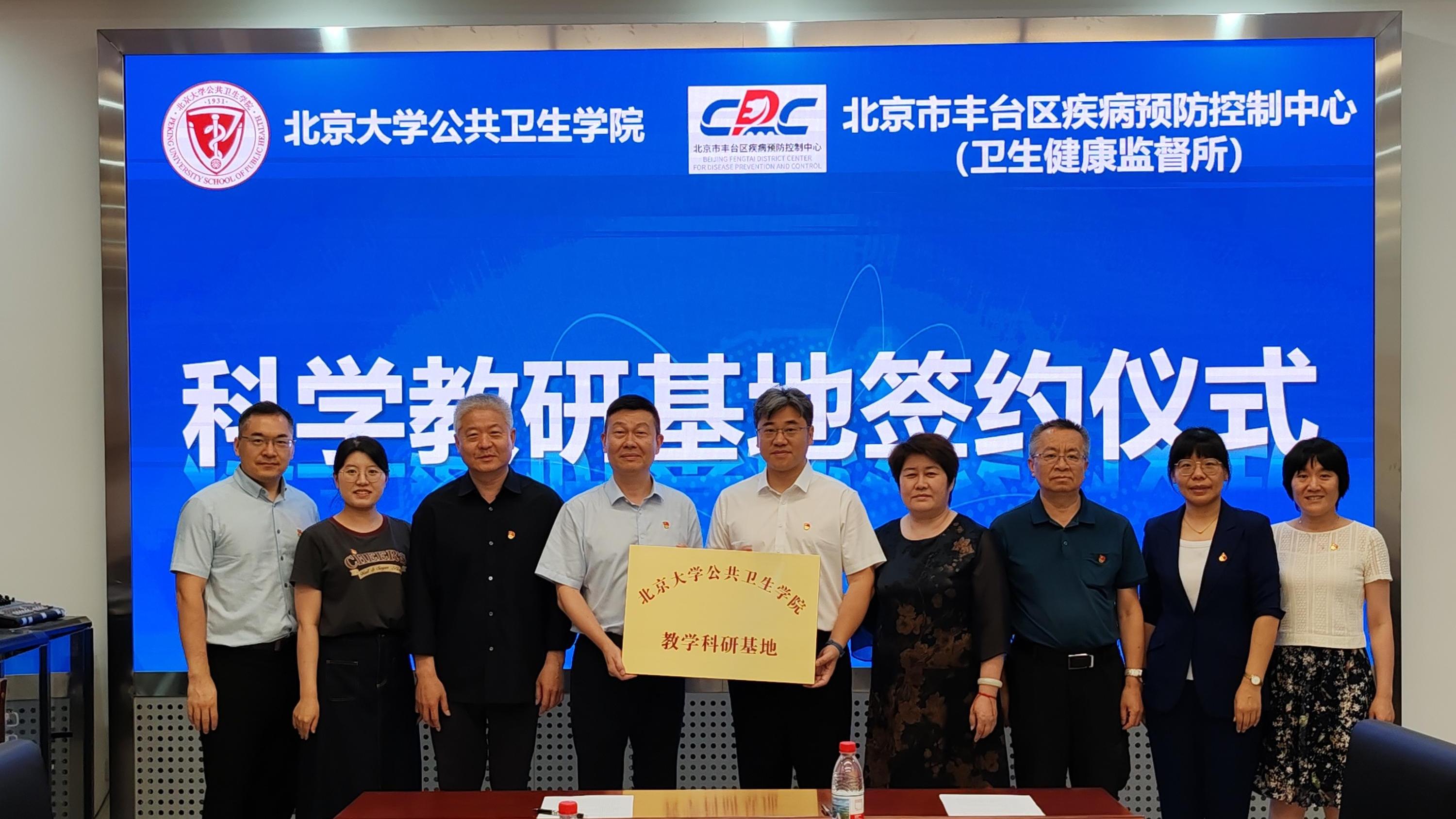 7 月 3 日,党委书记郝元涛、副院长任涛、院长助理刘杰到访北京市丰台区疾病预防控制中心,丰台区疾控中心负责人信振江、副主任孟艳等相关领导和工作人员参加活动。双方就教学科研的各项工作交流座谈,在协商一致后签署教学科研基地协议并挂牌。北京市丰台区疾病预防控制中心正式成为350vip浦京集团官网教学科研基地。