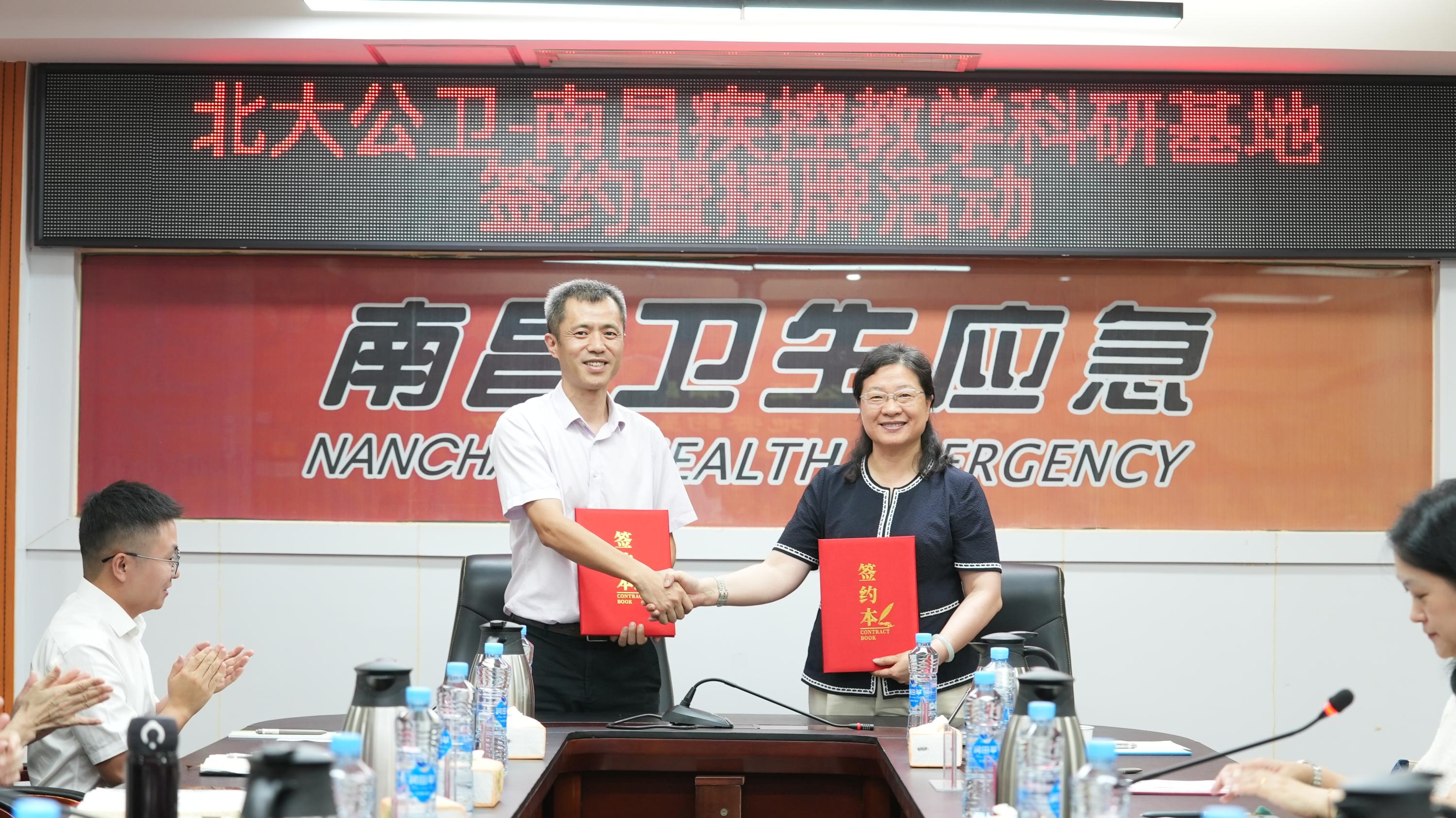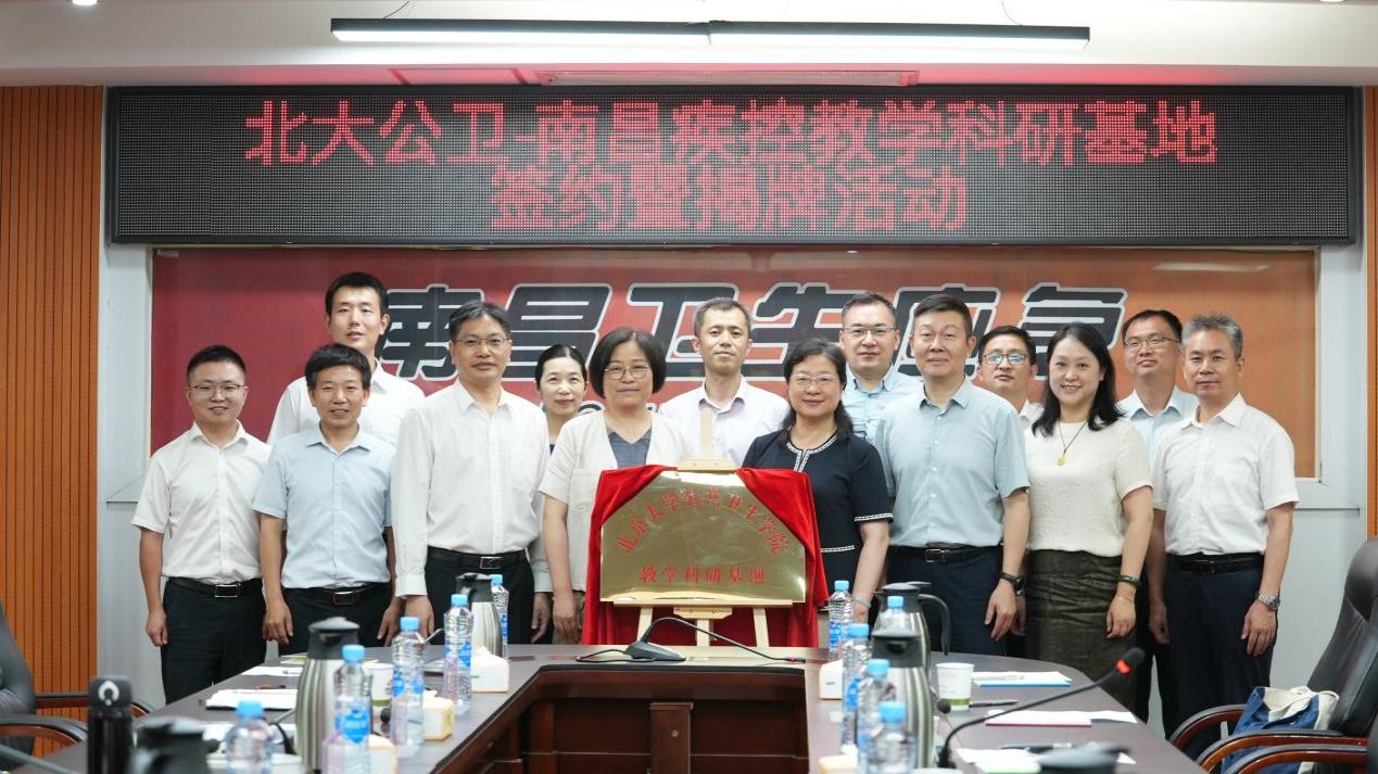 7 月 8 日,院长詹思延、党委书记郝元涛、党委副书记苏鸿、党委副书记张景怡、院长助理刘杰到访南昌市疾病预防控制中心,南昌市委卫健工委书记、市卫生健康委主任万里菲,南昌市疾控局局长、市卫健委副主任曾国华,南昌市疾控中心(市卫健执法局)党委书记、主任(局长)李辉及相关班子成员、各业务科室负责人共同参与。双方就教学科研相关工作进行交流座谈,之后进行了教学科研合作协议的签署及基地挂牌。南昌市疾病预防控制中心正式成为350vip浦京集团官网教学科研基地。