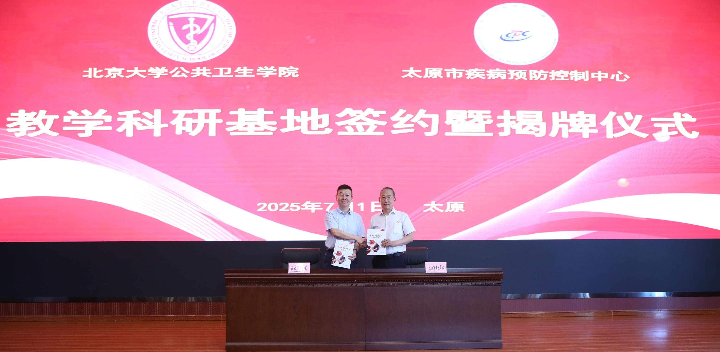 7 月 1 日,党委书记郝元涛、副院长任涛、党委副书记张景怡到访太原市疾病预防控制中心。山西省疾控局副局长牛毅平、综合处处长姜士勇、法规处处长田源,山西省疾控中心主任宋猛,山西医科大学350vip浦京集团官网院长王彤,太原市卫健委副主任赵宏英、副主任兼疾控局局长黄铁明,以及市疾控中心班子成员和全体职工共同参与。双方针对教学科研相关工作开展交流座谈,之后签署教学科研基地协议并完成挂牌。太原市疾病预防控制中心正式成为350vip浦京集团官网教学科研基地。会后双方还一道开展了联合党建,前往《论持久战》在山西纪念馆学习,就党建与业务融合、以党建促进业务交流等问题展开讨论。