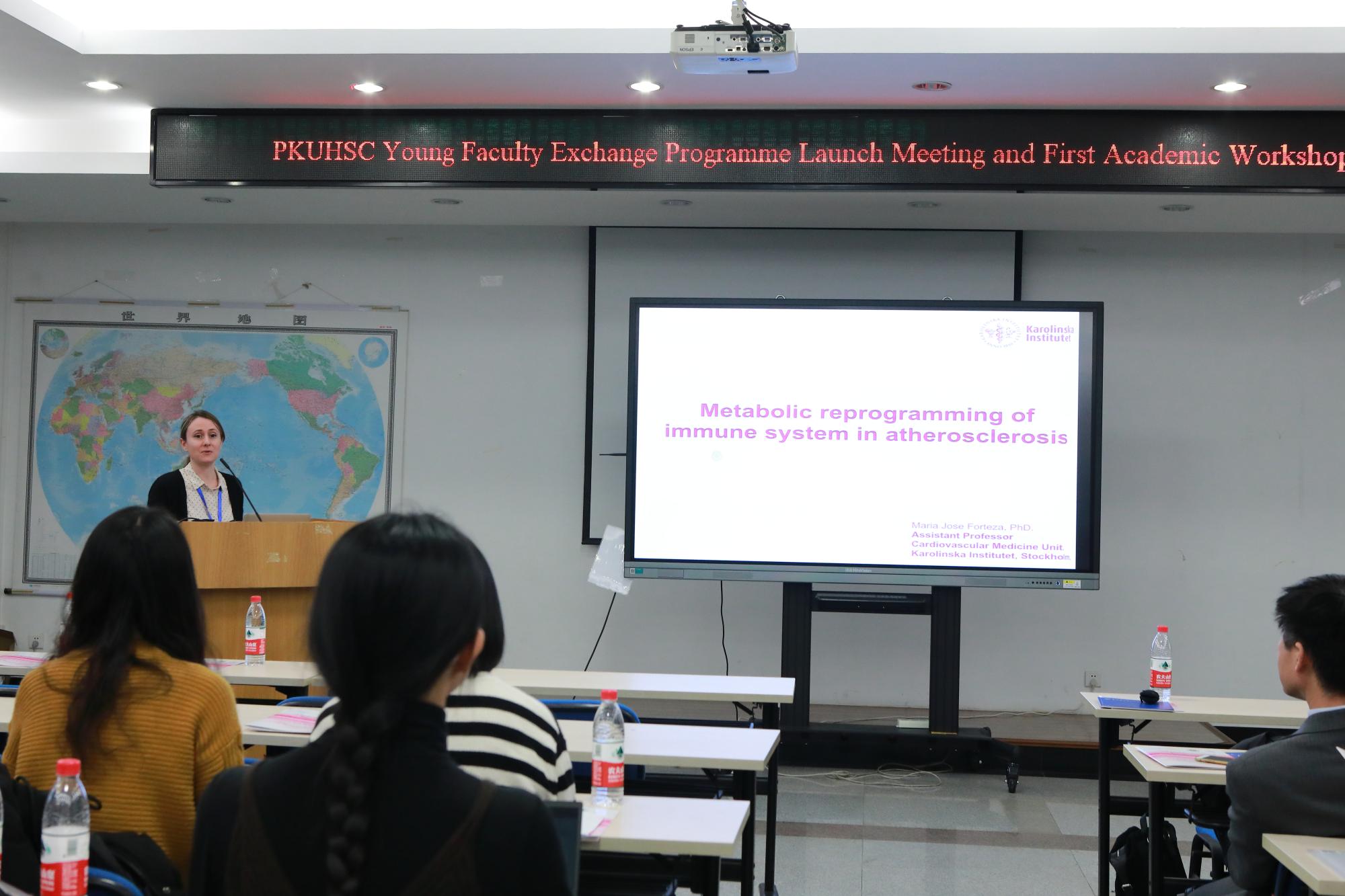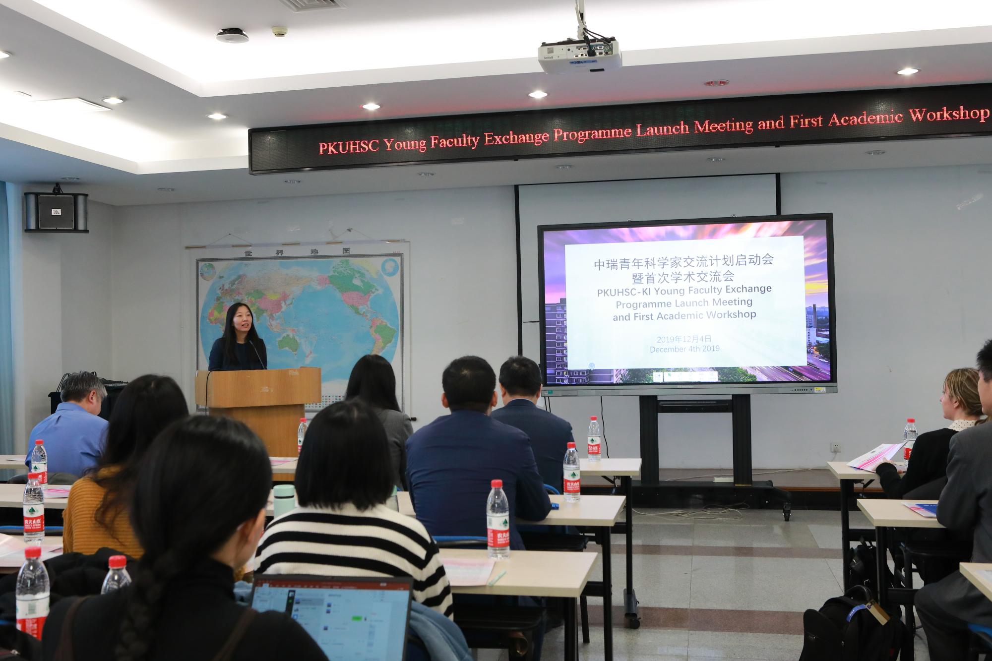医学部国合处李晓佳副处长发表致辞,对卡罗林斯卡学院各位专家学者的来访表示热烈欢迎,并简要介绍了北大医学部的学院和专业设置、本科生和研究生教育情况以及附属医院。她表示,350vip浦京集团官网医学部和卡罗林斯卡学院都是世界顶级的医学院校,两校联合建立的青年科学家交流计划,必将为两校未来合作交流增添新的活力。
