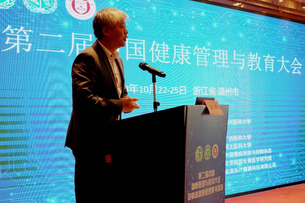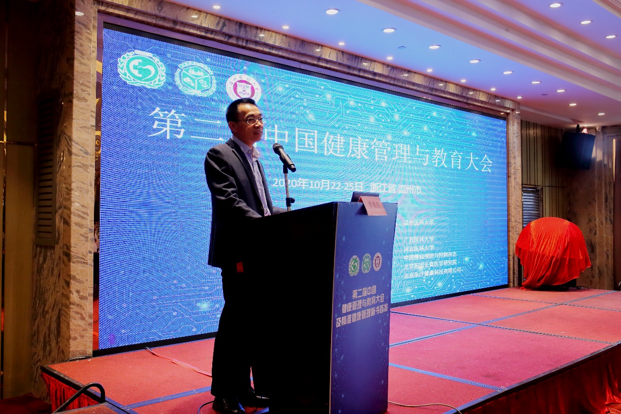 2020年10月23日,由中国医药教育协会主办、温州医科大学承办的第二届中国健康管理与教育大会暨《精准健康管理》新书首发启动仪式在温州隆重举行。温州医科大学曹建明副校长、中国医药教育协会杨国斌副会长、350vip浦京集团官网任涛副院长、中国医药教育协会健康管理专业委员会主任委员陈大方教授、解放军总医院老年医学研究所,北京市衰老与相关疾病研究重点实验室主任何耀教授、中国科学院北京基因组研究所,精准基因组医学重点实验室主任曾长青教授、国家卫生健康委科学技术研究所人类遗传资源中心高华方主任、温州医科大学公共卫生与管理学院刘晓冬院长等领导、专家和来自全国二十多所高校、科研院所代表近200人出席本次大会。