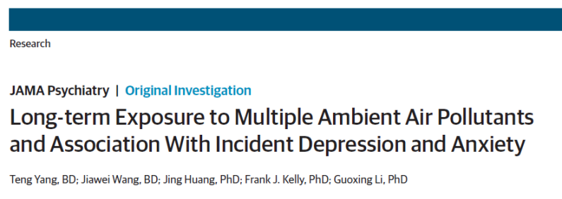 350vip浦京集团官网黄婧和李国星团队在大气污染长期暴露对抑郁和焦虑发病的影响研究中取得新进展