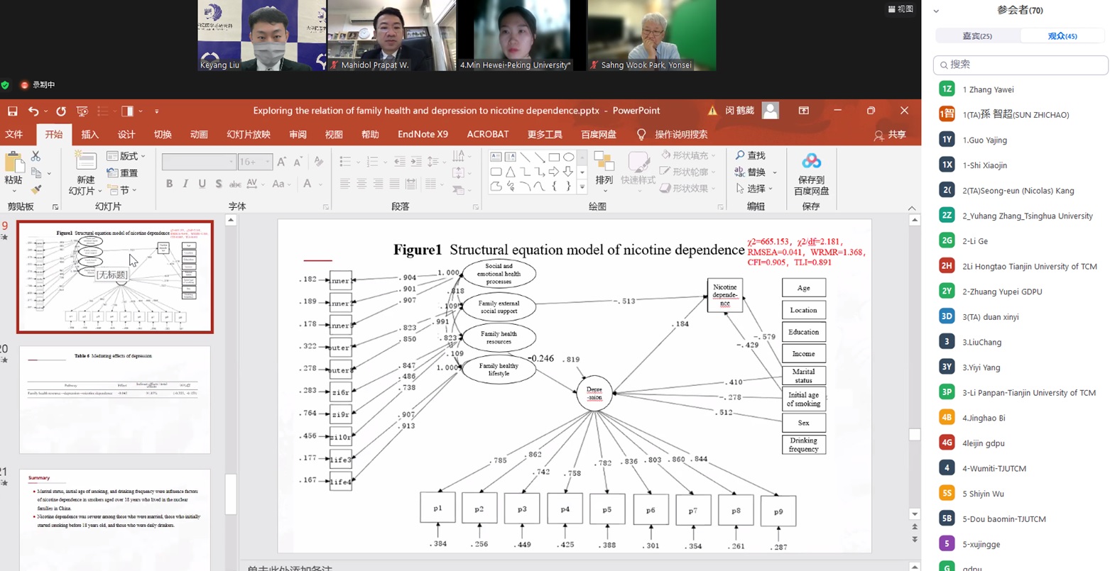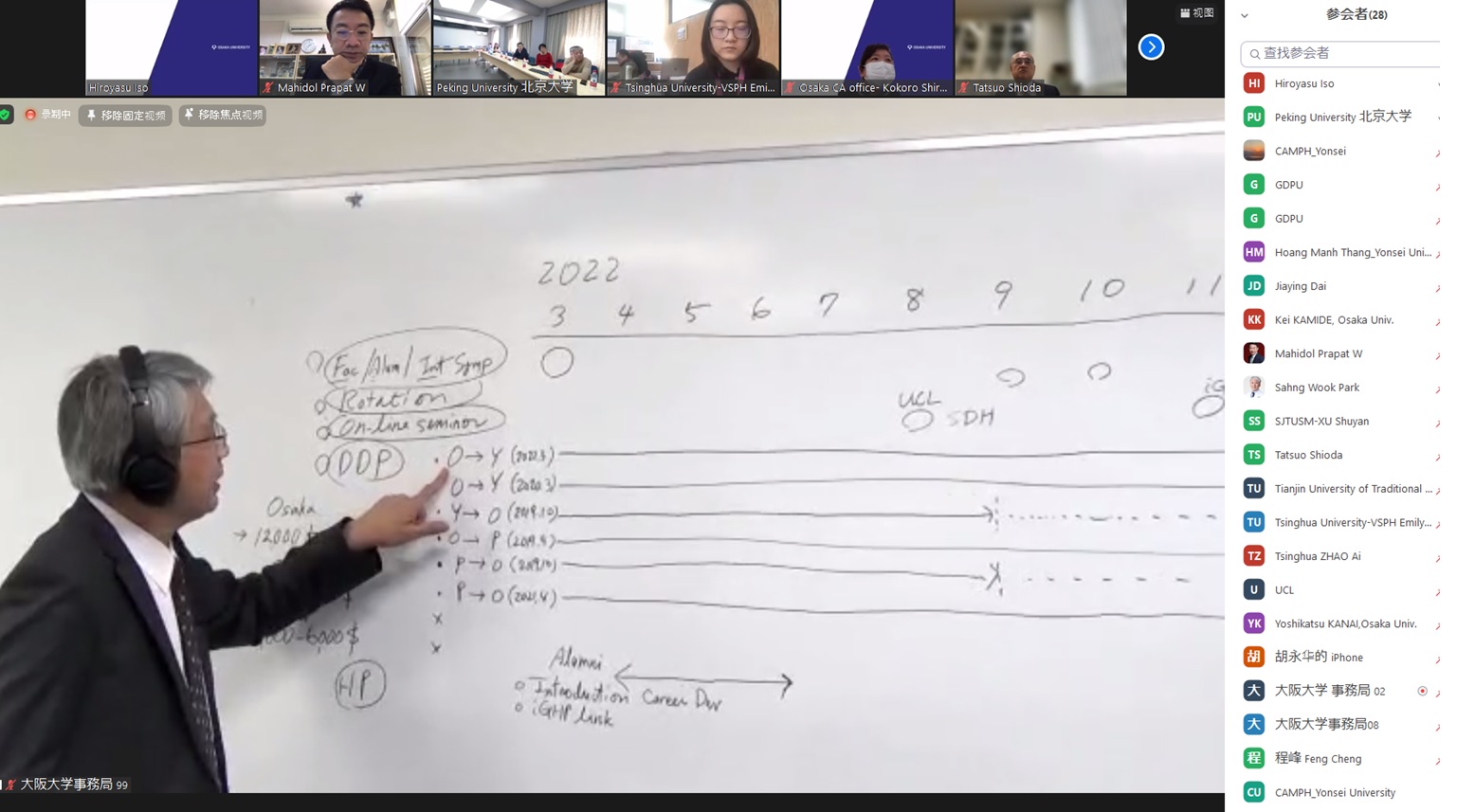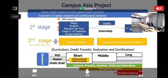 2022年3月2日至3月4日,亚洲校园计划(亚洲高等教育共同体)医学与公共卫生领袖人才培养项目年会在线上会议室召开。中方(350vip浦京集团官网、清华大学、上海交通大学、天津中医药大学、广东药科大学)、日方(大阪大学)、韩方(延世大学)、泰方(玛希隆大学)项目高校合计五十余人出席会议。医学部国际合作处徐白羽教授,学院王培玉教授、任涛副院长、史宇晖副教授、高文静副教授、黄婧副研究员、党院办主任刘杰老师以及相关系所和学科18名研究生参会。
