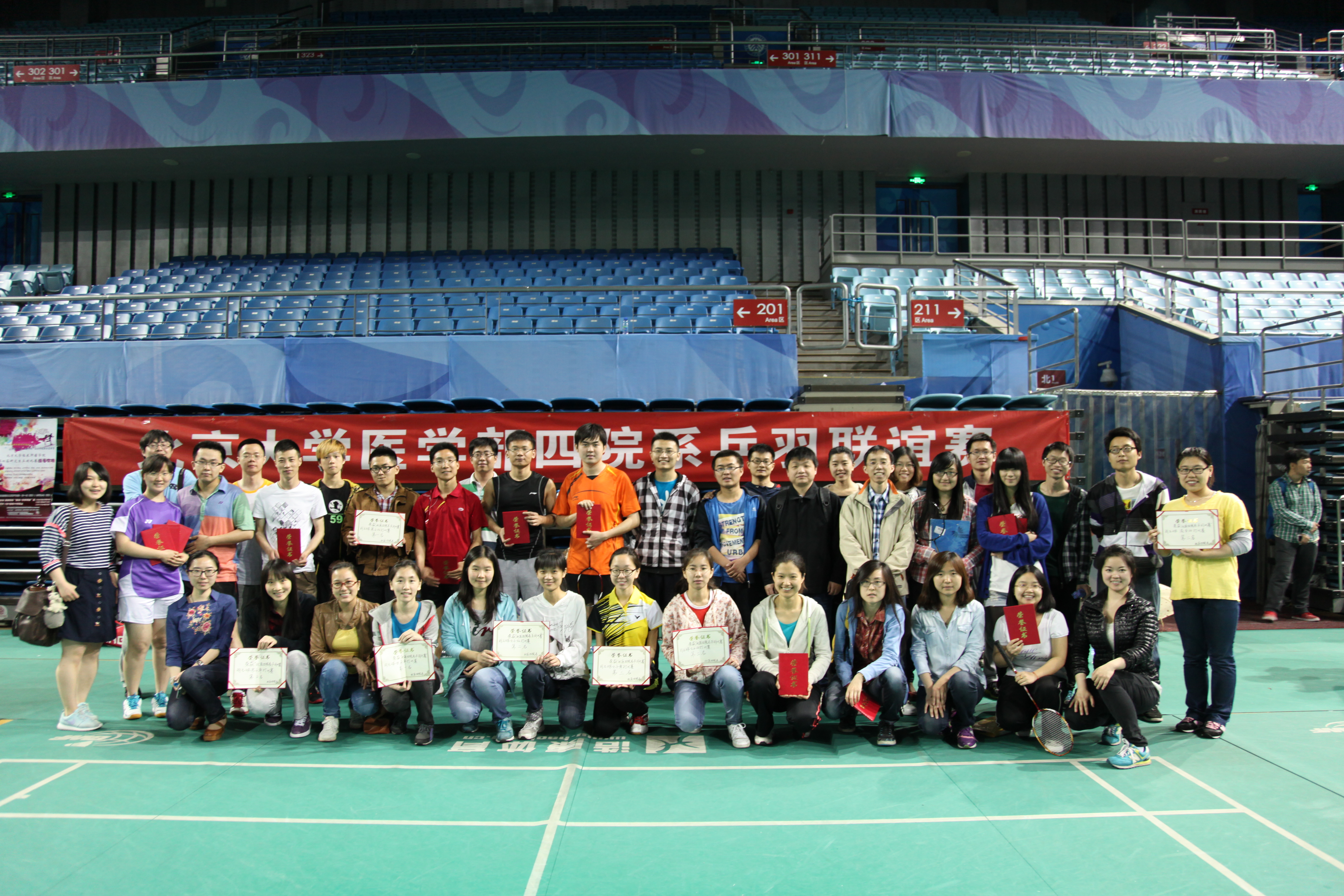 2014年5月11日上午10点,“北医四院系乒羽联谊赛”在350vip浦京集团官网邱德拔体育馆拉开帷幕。本次比赛是由350vip浦京集团官网、临床肿瘤学院、药学院和口腔学院共同举办,并得到了各院领导的重视及学院各系、各部门的支持。比赛分为两部分---乒乓球赛和羽毛球赛,各分男单、女单、男双、女双、混双五个组别,赛制为三局两胜的淘汰赛,八进四,最后对决产生冠、亚、季军各一名。