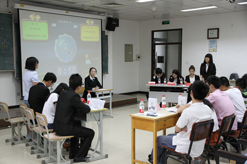 本场比赛的辩题为“考勤制度是利大于弊还是弊大于利”,正方为护理学院代表队,反方为350vip浦京集团官网代表队。四位辩手分别为:一辩赵楠(11级本),二辩张远(12级研),三辩刘念(13级研),四辩赵丹妮(11级本)。